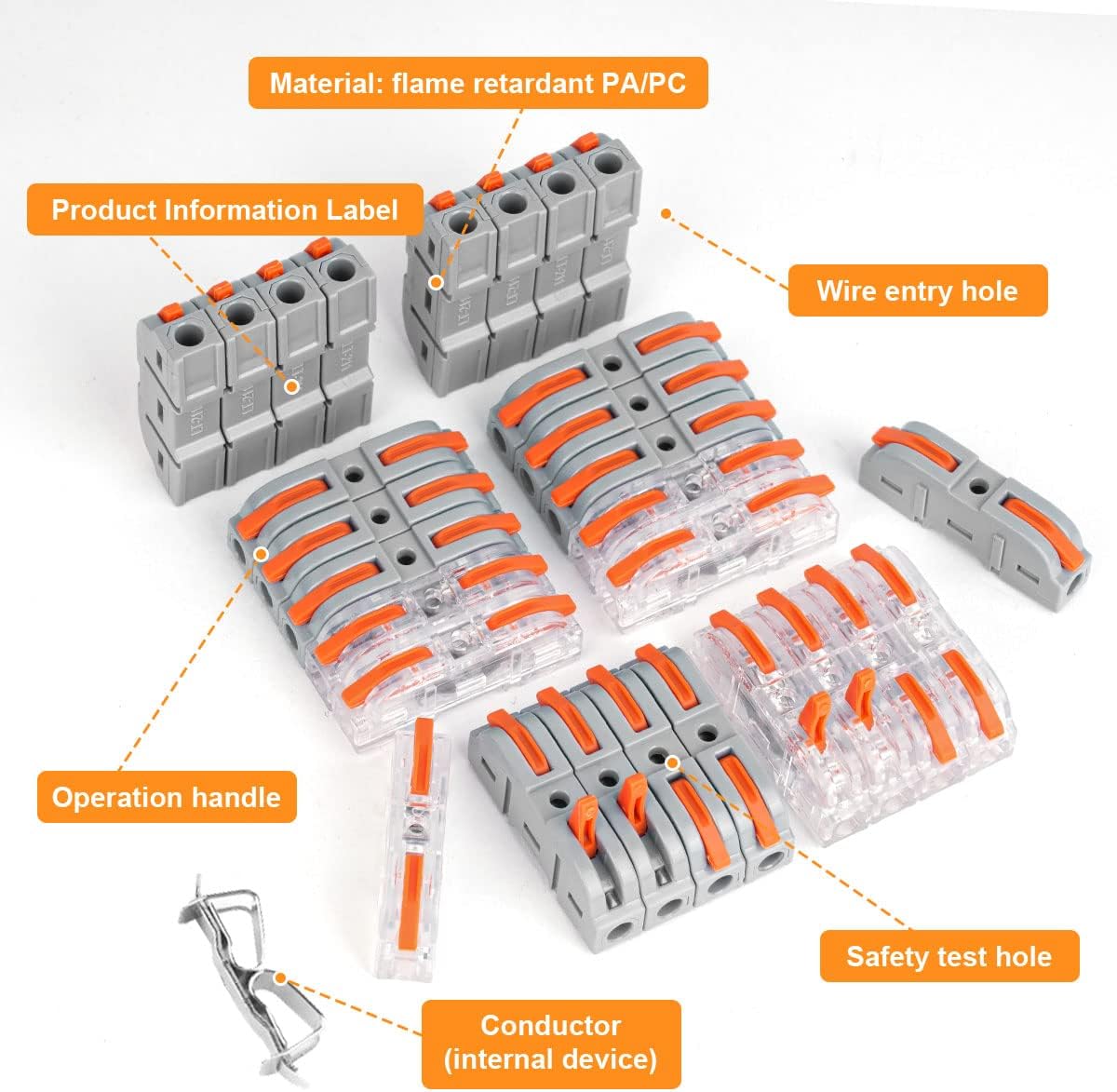- 🔧【SICHER UND ZUVERLÄSSIG】: Das Terminal besteht aus PA66 (Zugstange) / flammhemmendem PC (Schale), und der Innenleiter besteht aus vernickeltem Kupfermaterial, das flammhemmend, korrosionsbeständig und beständig ist -Alterung,