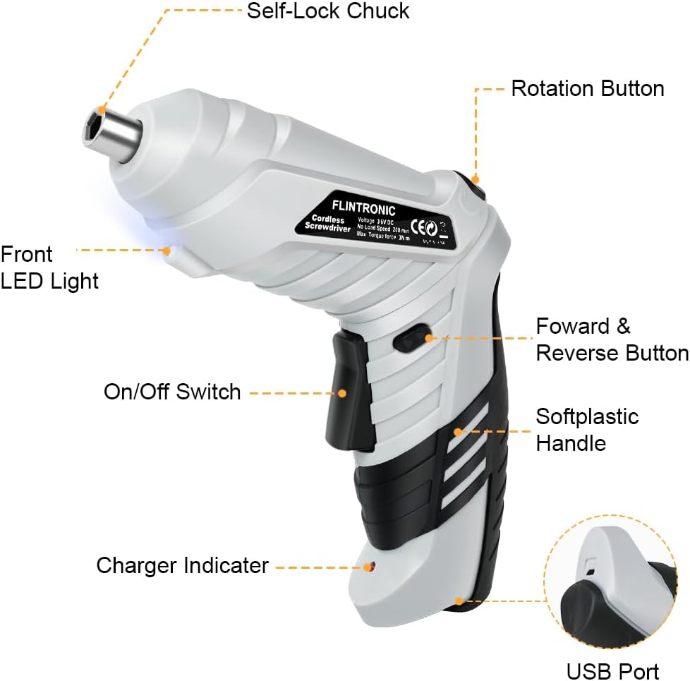 - 【BREITE ANWENDUNG】 Dieser Schraubendreher ist eine ideale Wahl für kleine tägliche Arbeiten. Er eignet sich perfekt für die schnelle und einfache Montage von Möbeln, die Installation von Schränken, Heimwerkerarbeiten oder anderen