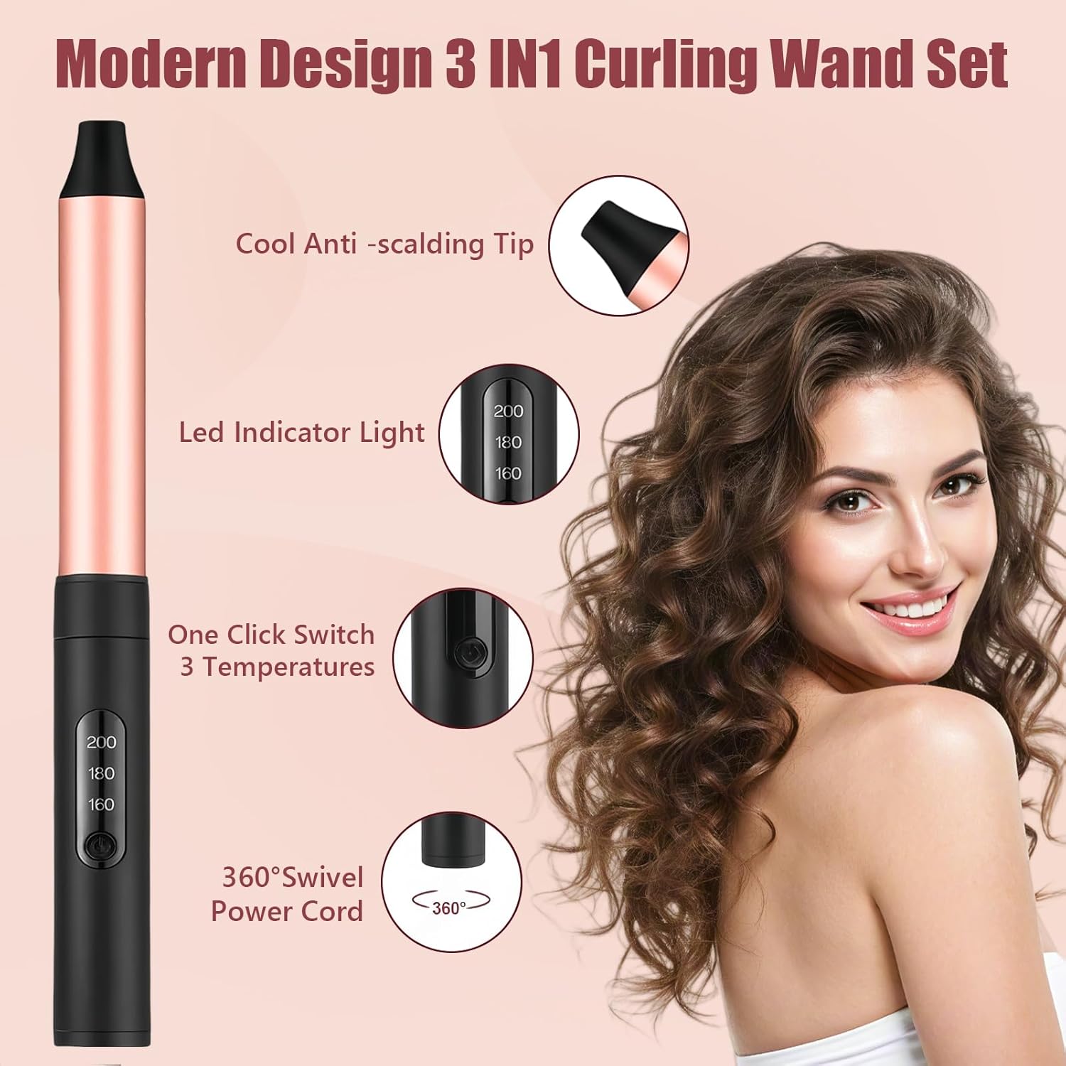 - 🌷🌷【Ideales Geschenk】3-in-1-Lockenstab-Set für krausfreie, glänzende und lang anhaltende Locken. Es ist ein ideales und perfektes Geschenk für Freunde, Liebhaber und Familie zu Weihnachten, Valentinstag und Geburtstagen.