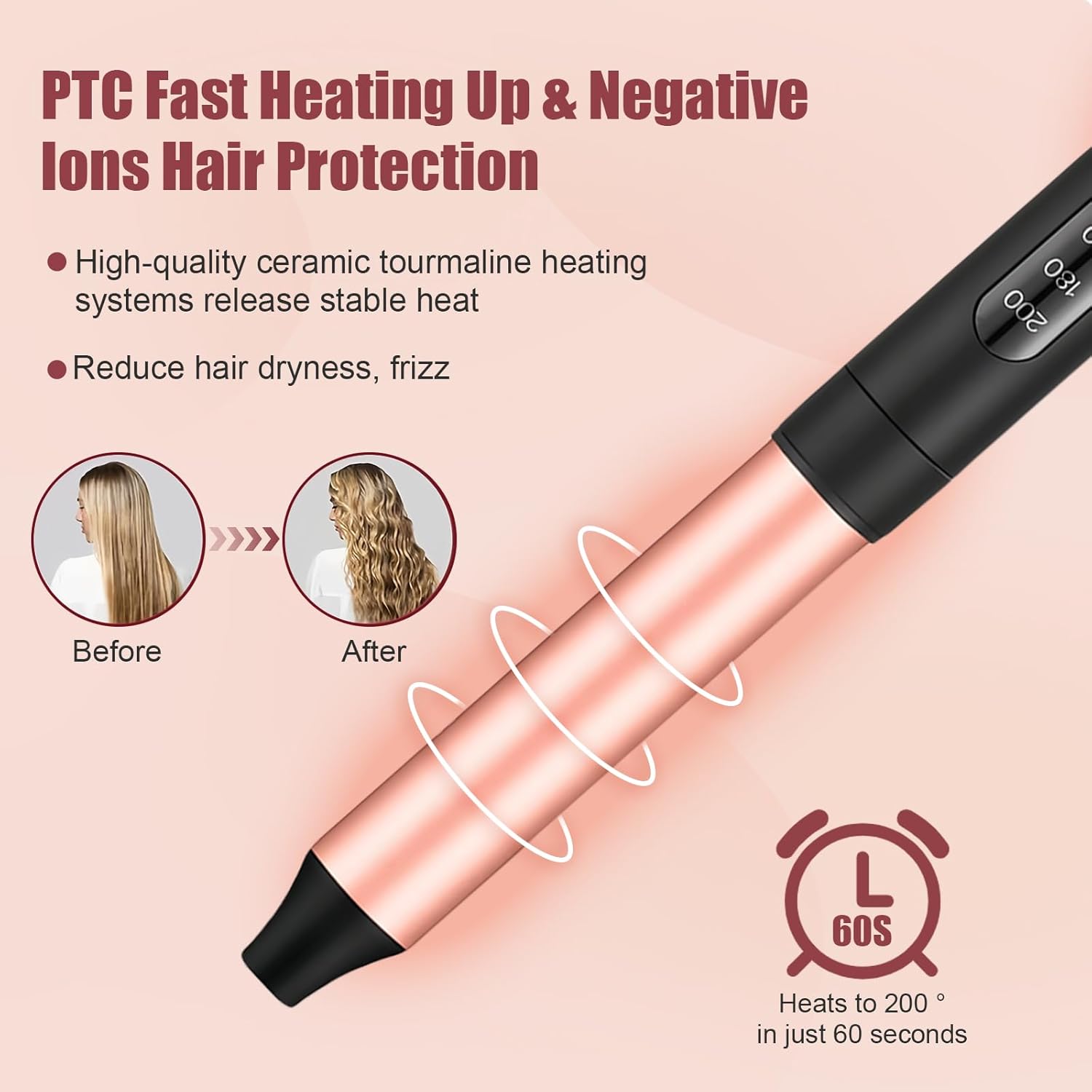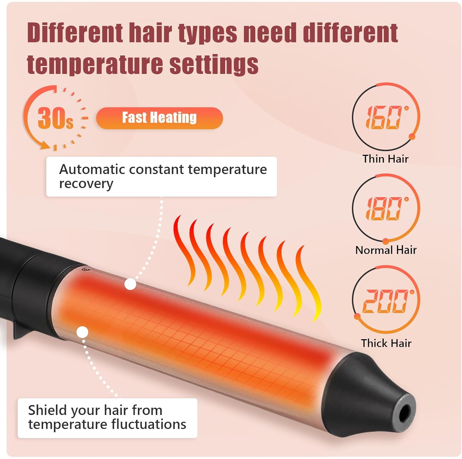 - 🌷🌷【Schnell aufheizender Lockenstab】Diese hocheffizienten Lockenstäbe erhitzen sich in nur 60 Sekunden auf bis zu 200 °C und erzeugen so mühelos atemberaubende und glänzende Locken, während die mitgelieferten hitzebeständigen Handschuhe