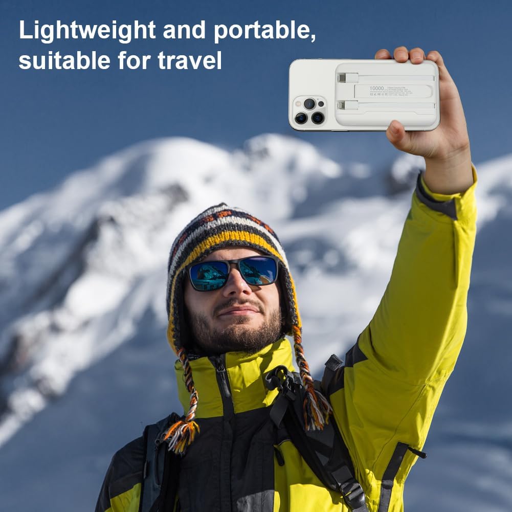 - đđăLeicht zu tragenăDie kabellose magnetische Powerbank ist klein und leicht, sodass Sie sie ĂŒberallhin mitnehmen können. Wenn Sie ausgehen, können Sie es jederzeit und ĂŒberall in Ihre Tasche, Ihren Rucksack oder Ihre Handtasche stecken, um
