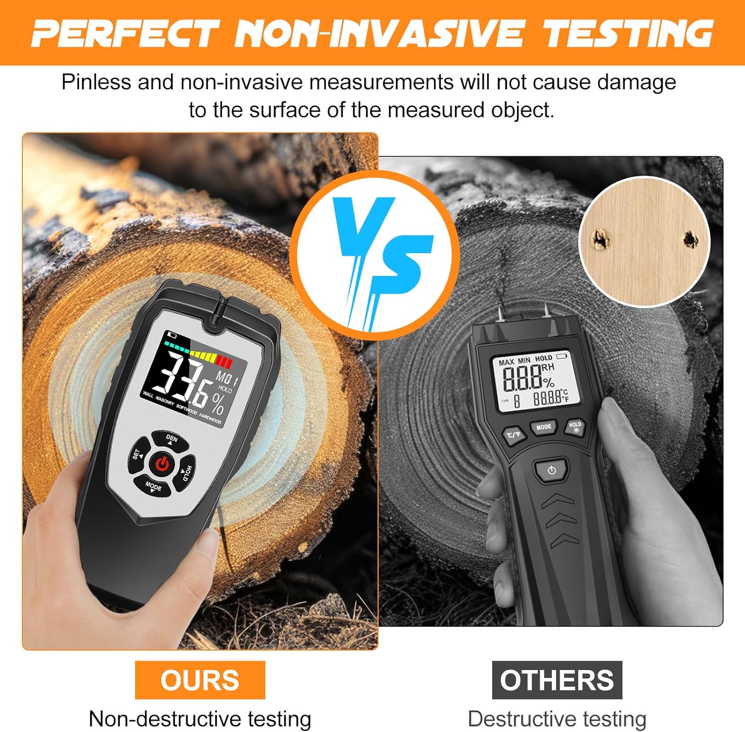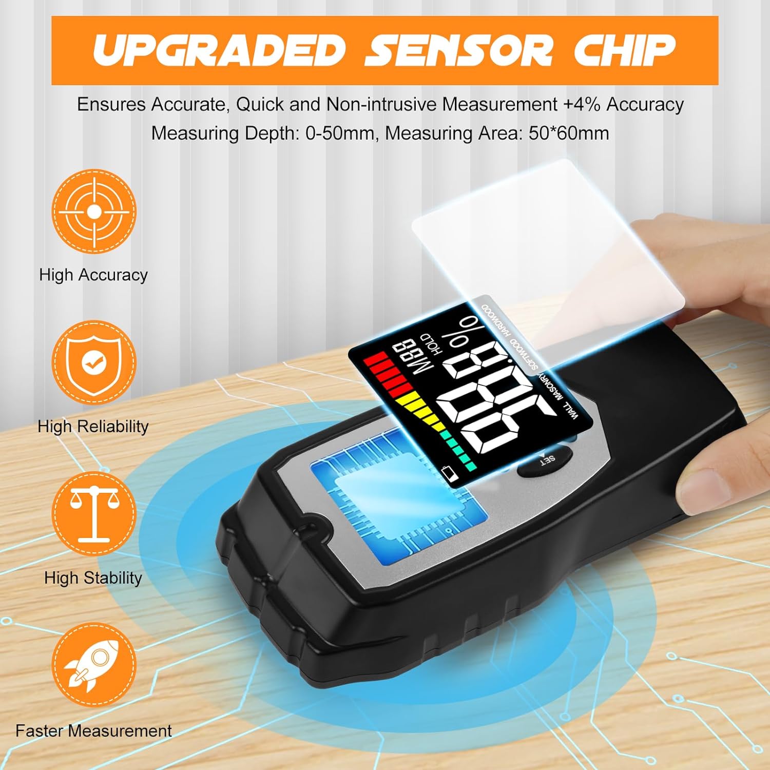 - 【GENAUE ERKENNUNG】Das feuchtemessgerät wand verwendet eine nadelfreie hochfrequente elektromagnetische Welleninduktionserkennung, die die Erkennung abschliessen kann, ohne das Objekt zu beschädigen. Mit einer Genauigkeit von ±4 % sind hochpräzise