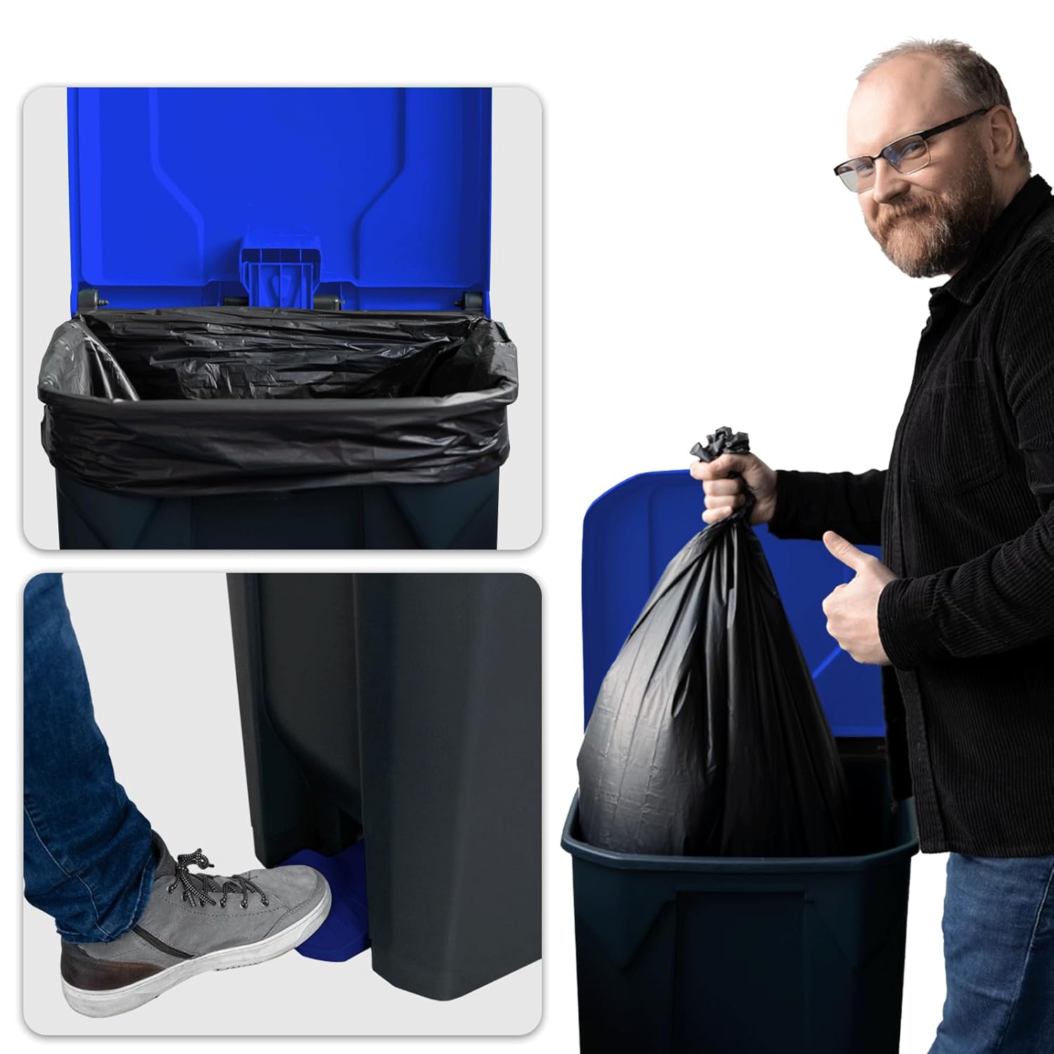 - ✅ HYGIENISCHE BEDIENUNG – Dank des Step-On-Pedals öffnet sich der Deckel per Fussdruck, sodass Sie den Mülleimer nicht mit den Händen berühren müssen – für maximale Sauberkeit!
