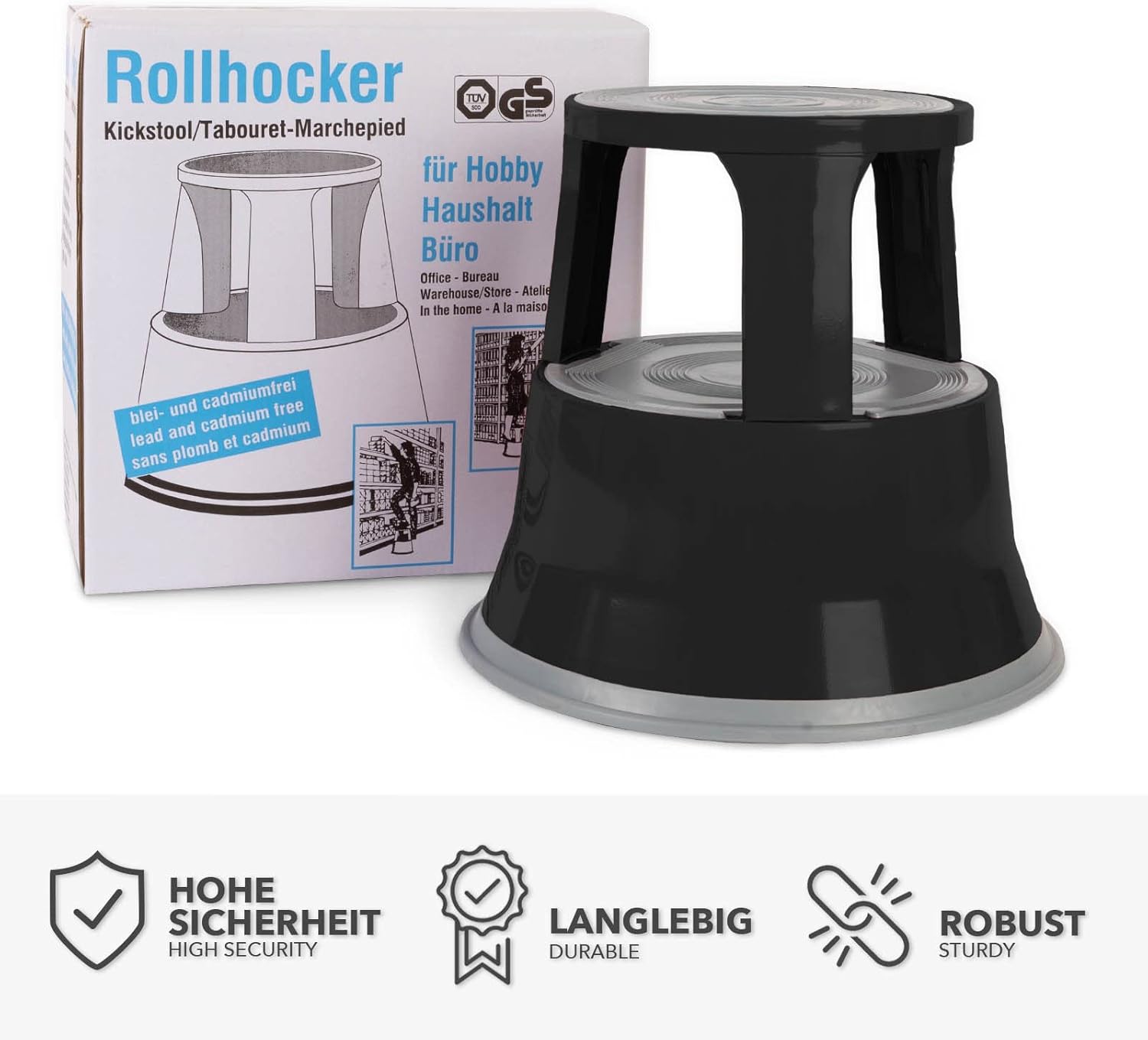 - ✅ ROBUSTES GEHÄUSE AUS STAHL - Der extrem stabile Rollhocker aus Stahl ist ein praktischer Helfer für zu Hause, das Büro oder Ladengeschäfte. Mit ihm gewinnen Sie 40 Zentimeter an Grösse, wenn etwas in unerreichbaren Höhen erreicht werden soll!