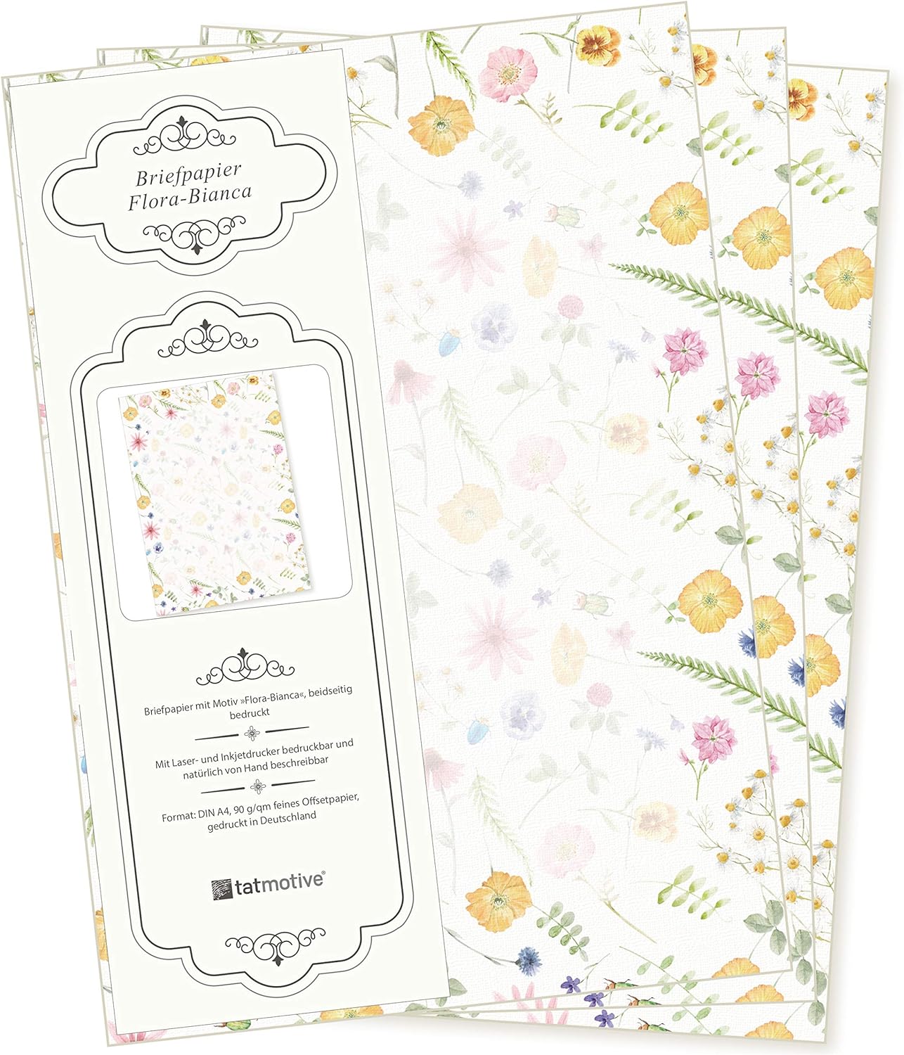 - Glückwunsch! Hier hast Du ein tolles Briefpapier entdeckt, das nicht nur wunderschön aussieht sondern auch nachhaltig produziert wurde, Du erhältst: 500 Blatt Briefpapier FLORA BIANCA beidseitig bedruckt im Vintage Stil