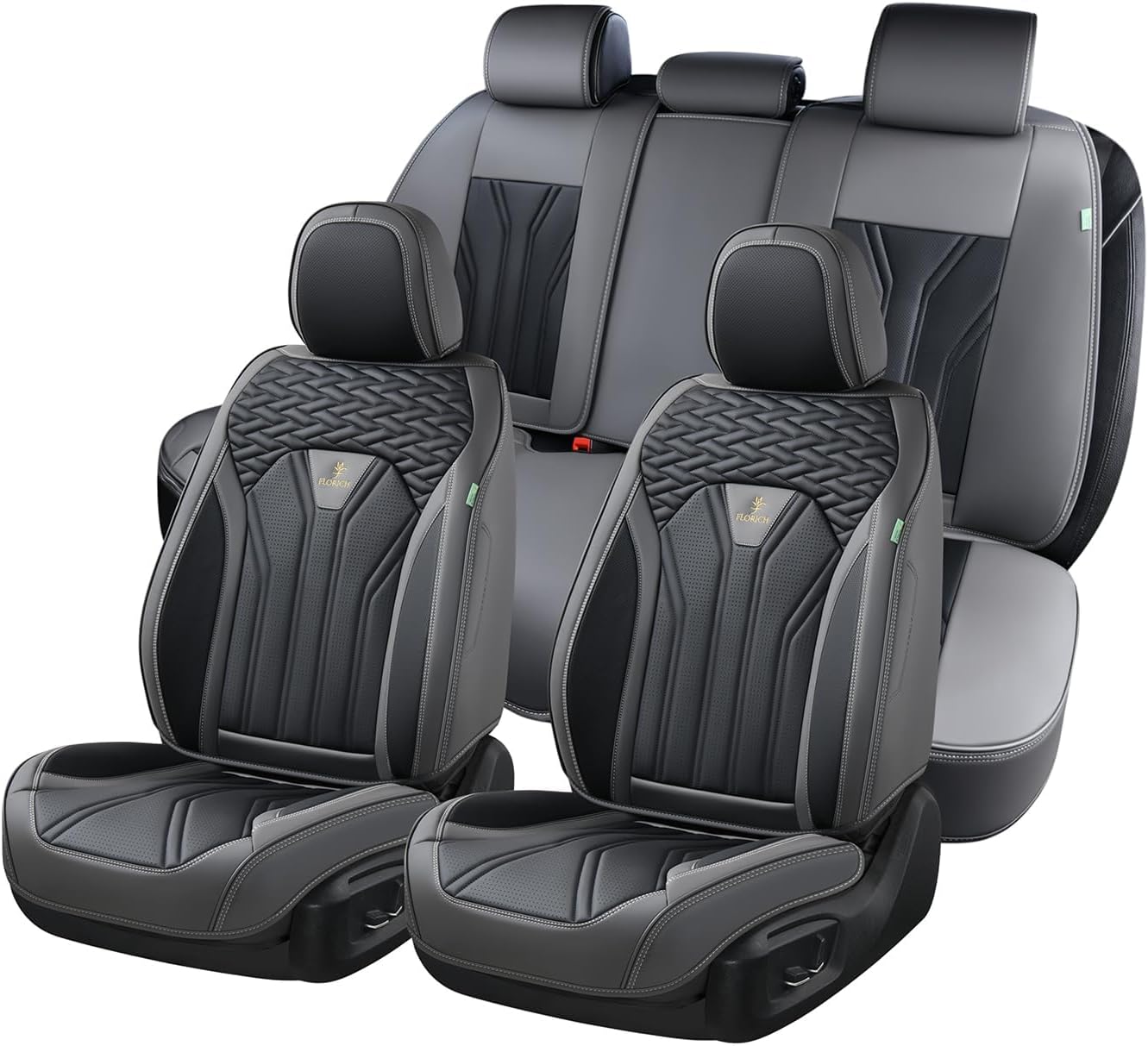 FLORICH Autositzbezüge Leder, Vorder- und Rücksitzbezüge, 5 Stück, komplettes Set, universell passen