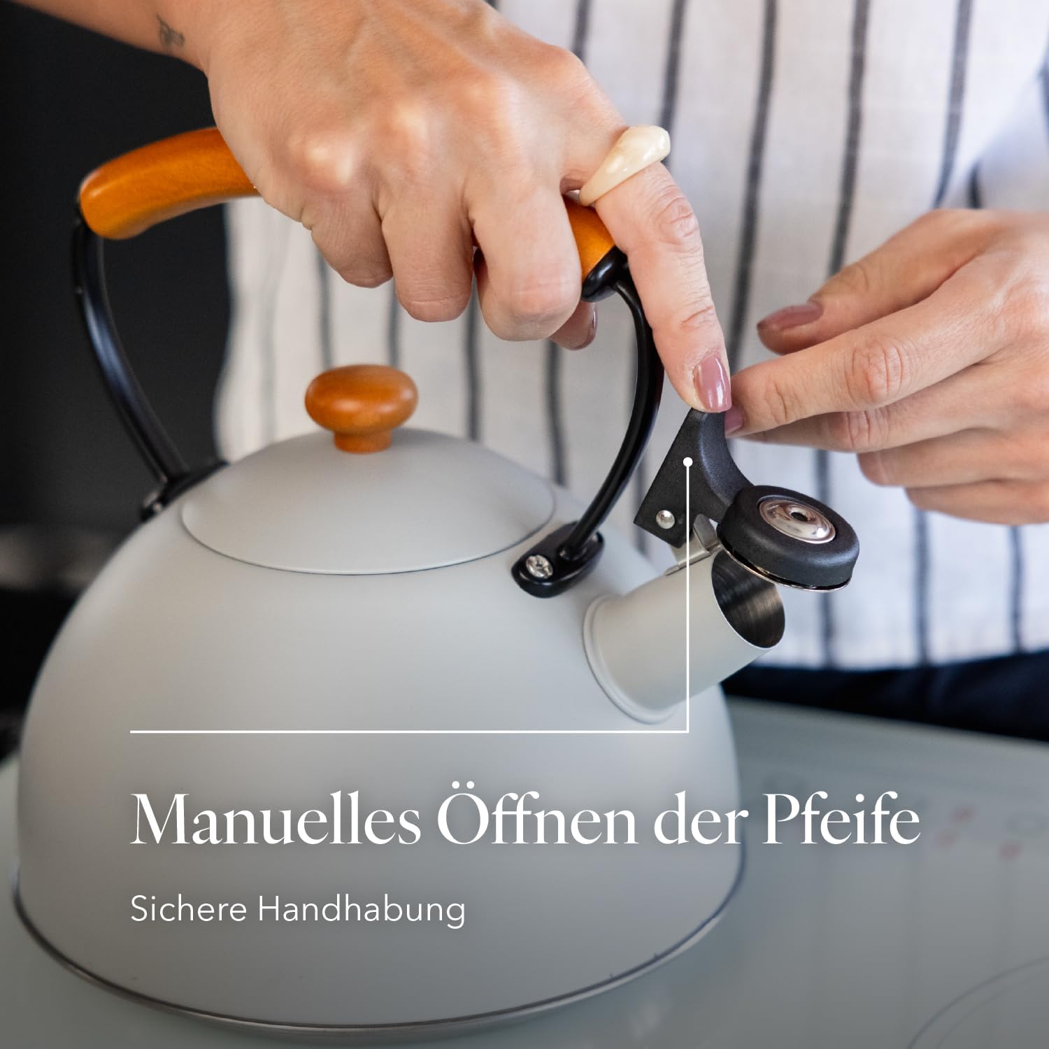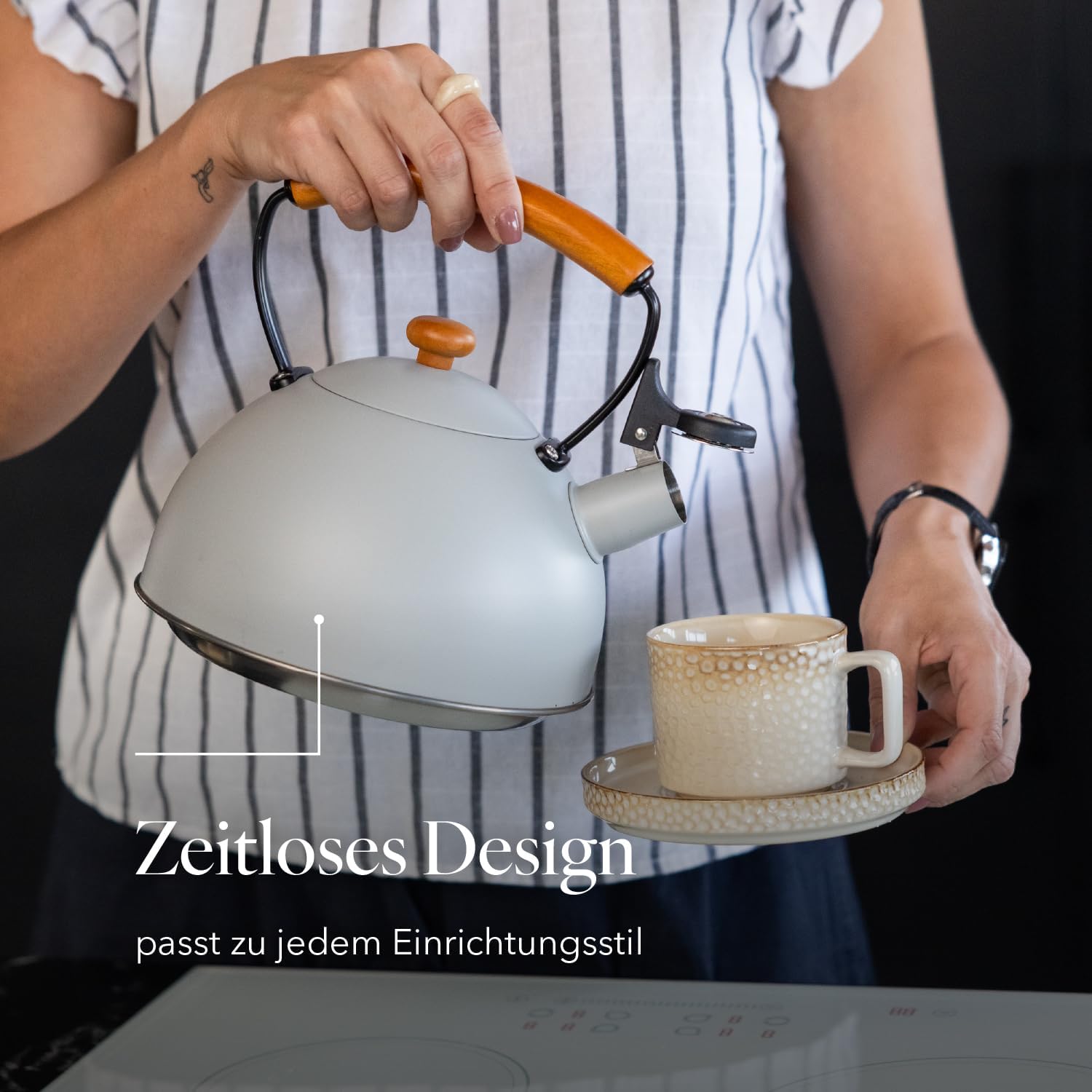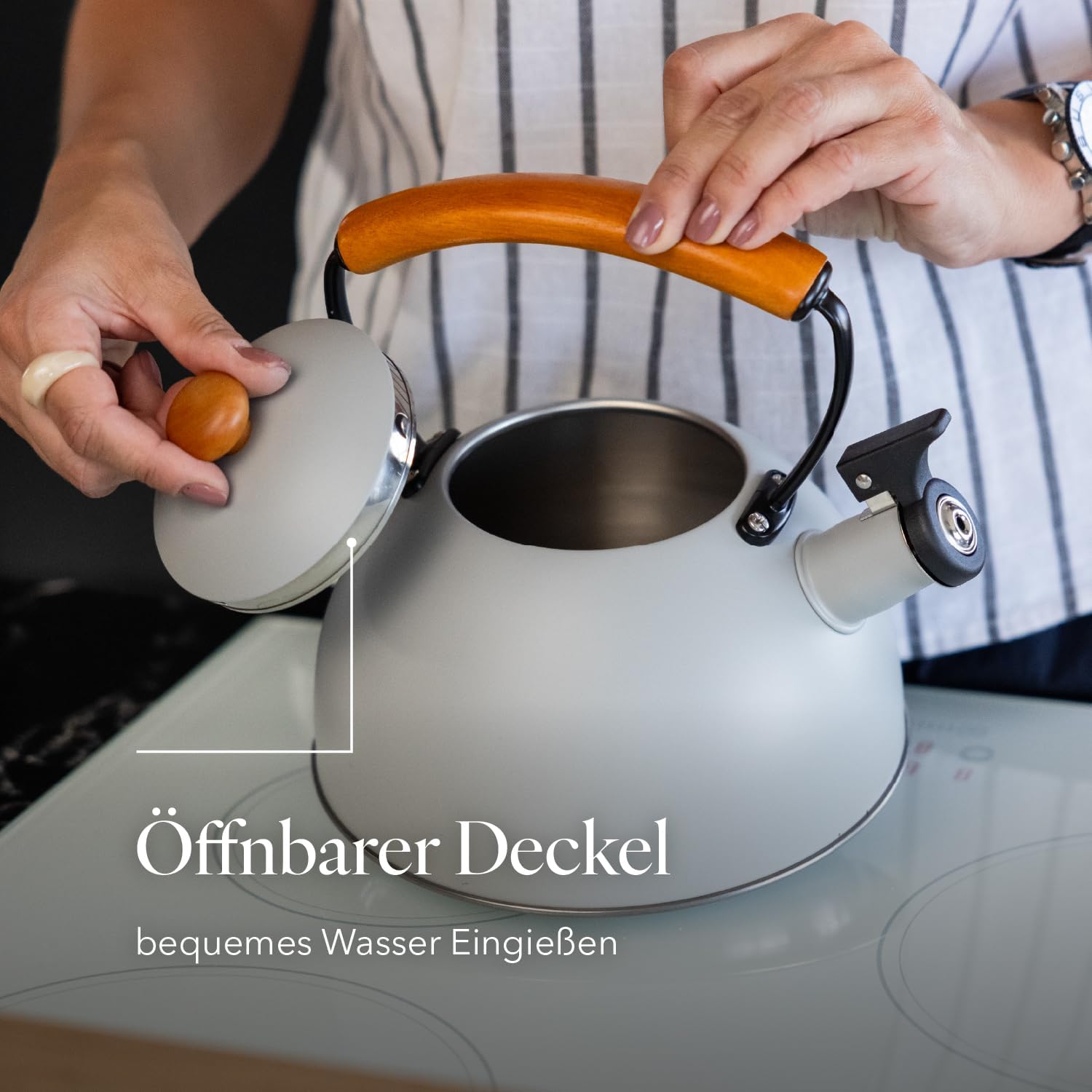 - 【GEEIGNET FÜR ALLE KÜCHEN】 Der Wasserkocher ist für alle Herdarten geeignet: Induktion, Glaskeramik, Gas oder Elektro. Das Design des Holzgriffs verleiht ihm einen Hauch von Stil und Unterscheidungskraft.