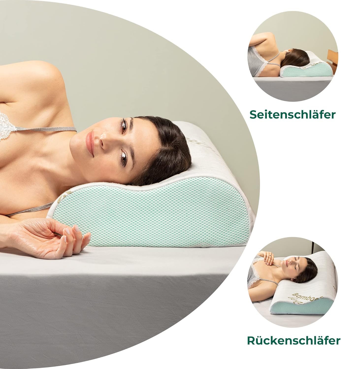 - Das Kissen ist so konzipiert, dass es Unterstützung und Komfort während des Schlafs bietet. Bei diesem Modell wird hochwertiger Memory-Schaum mit einem Bambusbezug kombiniert, um eine ideale Schlafumgebung zu schaffen.