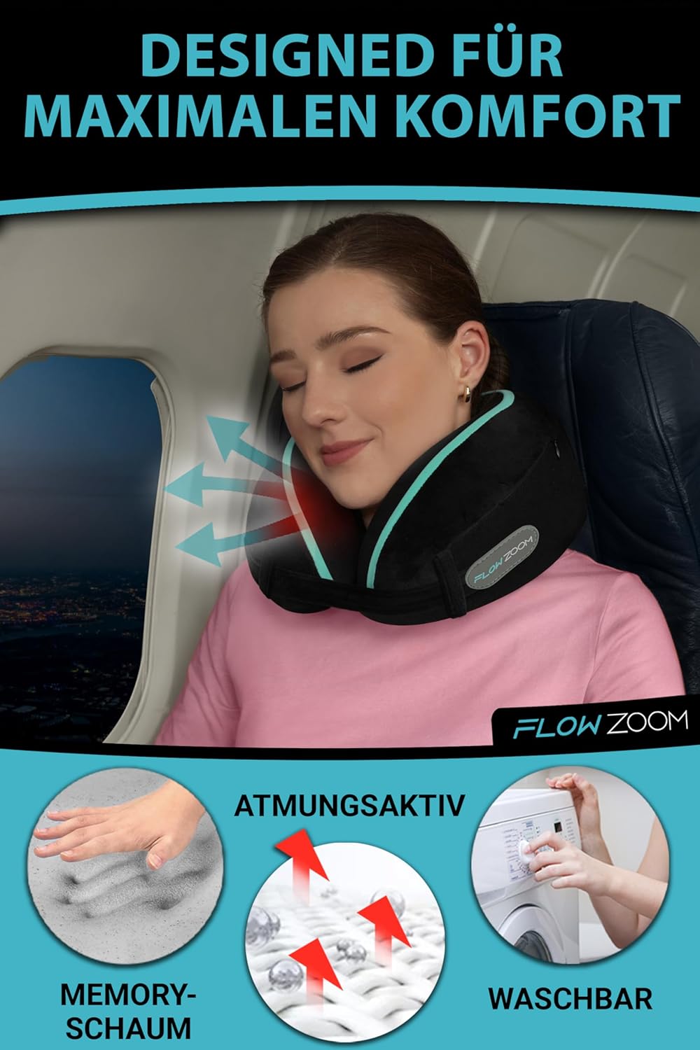 - 🛫 KOMFORT AUF REISEN - Dein Kopf wird beim Zurücklehnen im Flugzeug dank der extra-schmalen Rückseite des Nackenkissen NICHT NACH VORNE GEDRÜCKT