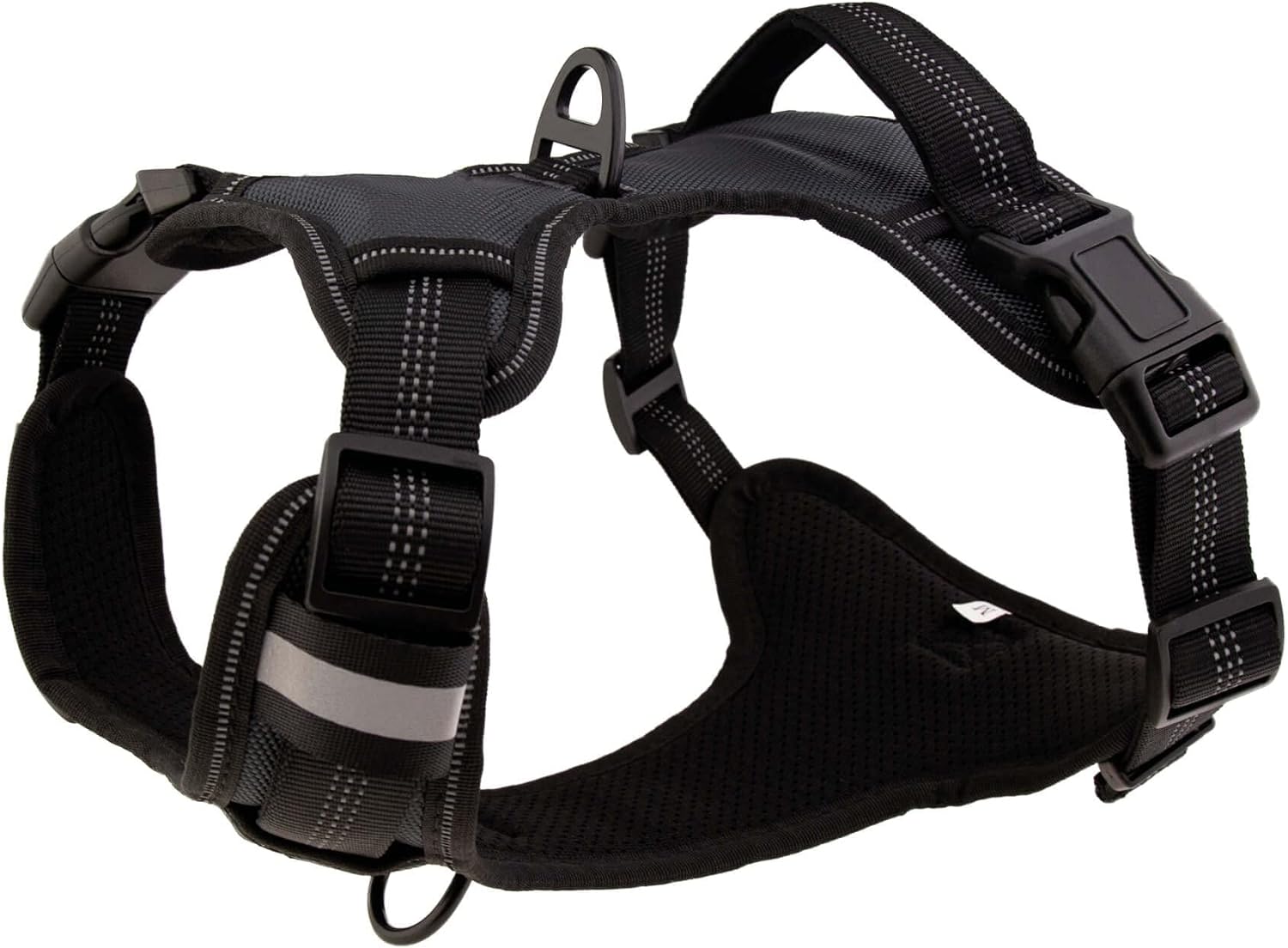 Floxik Hundegeschirr grau M | Anti Zug Brustgeschirr reflektierend & gepolstert mit Haltegriff für m