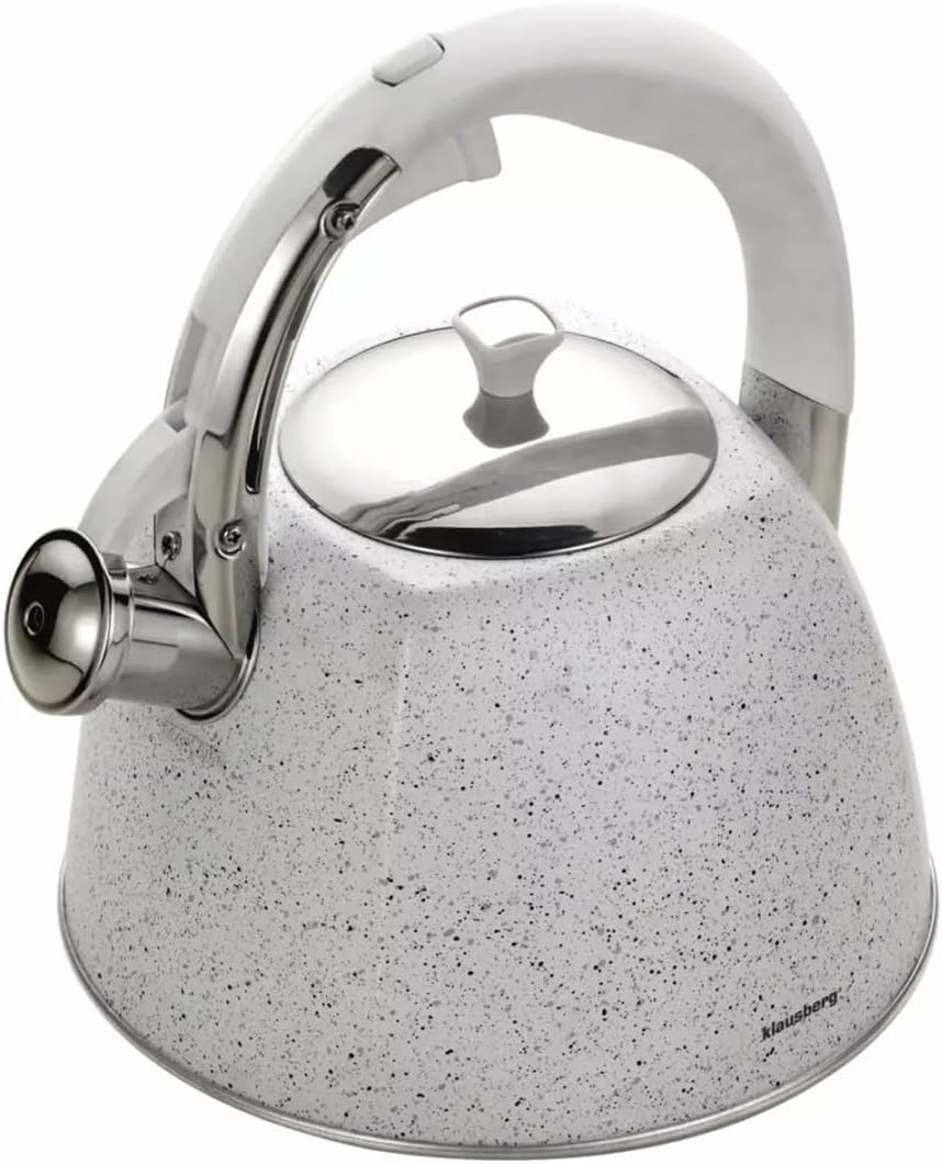 Flötenkessel Wasserkessel Edelstahl Inox Marmorbeschichtung 3.0L Klausberg KB-7261 Weiss | Marmor, W