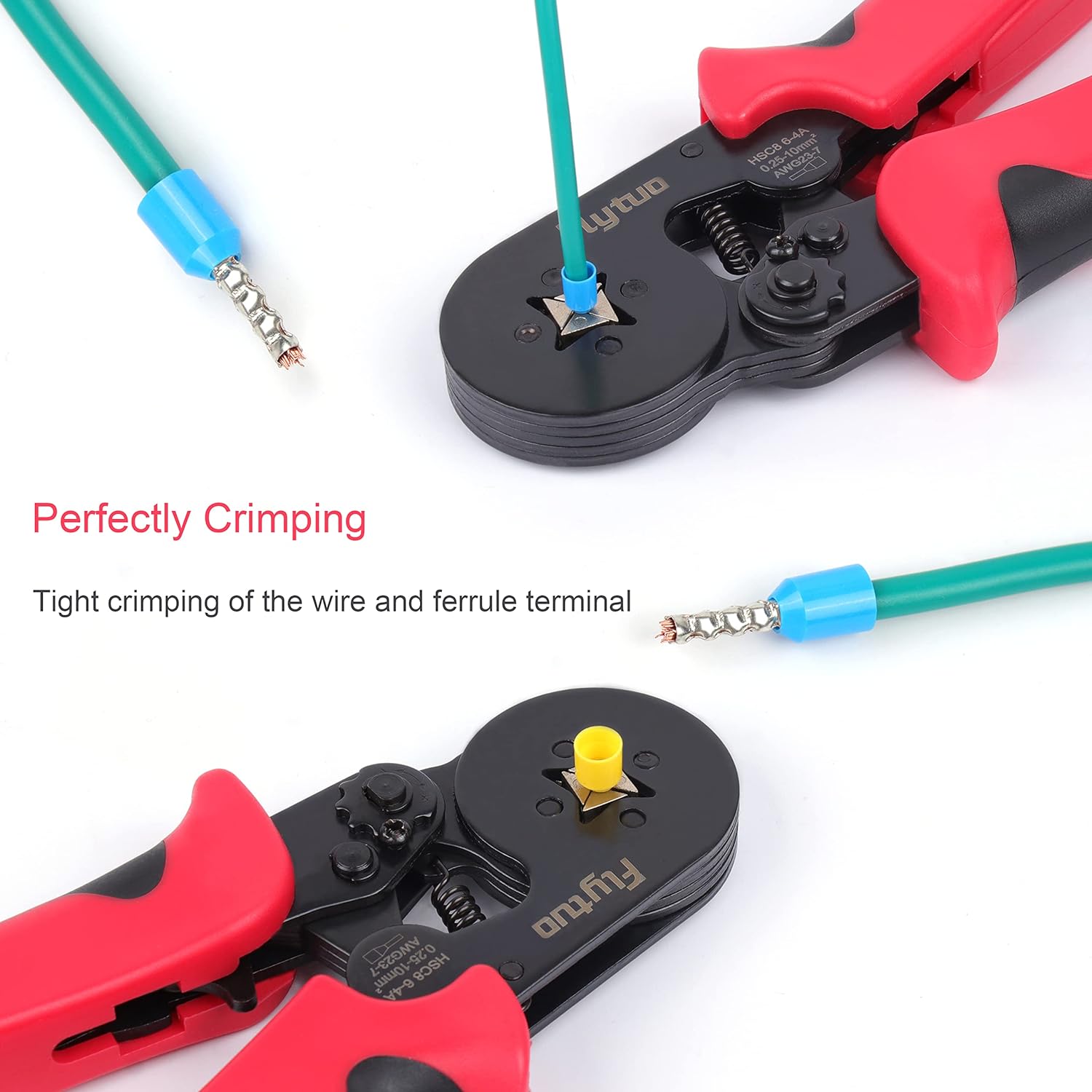 • 🍀【Ratschen-Design:】 Mit dem arbeitssparenden Ratschenmechanismus und dem rutschfesten Nylongriff mit Hebelprinzip ermöglicht die Zange ein einfaches und komfortables Crimpen. Die automatische Anpassung an den entsprechenden Durchmesser und der
