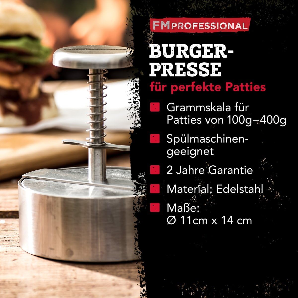 FMProfessional Burgerpresse für leckere Hamburger by Fackelmann – Hamburgerpresse mit 100g - 400g Pa