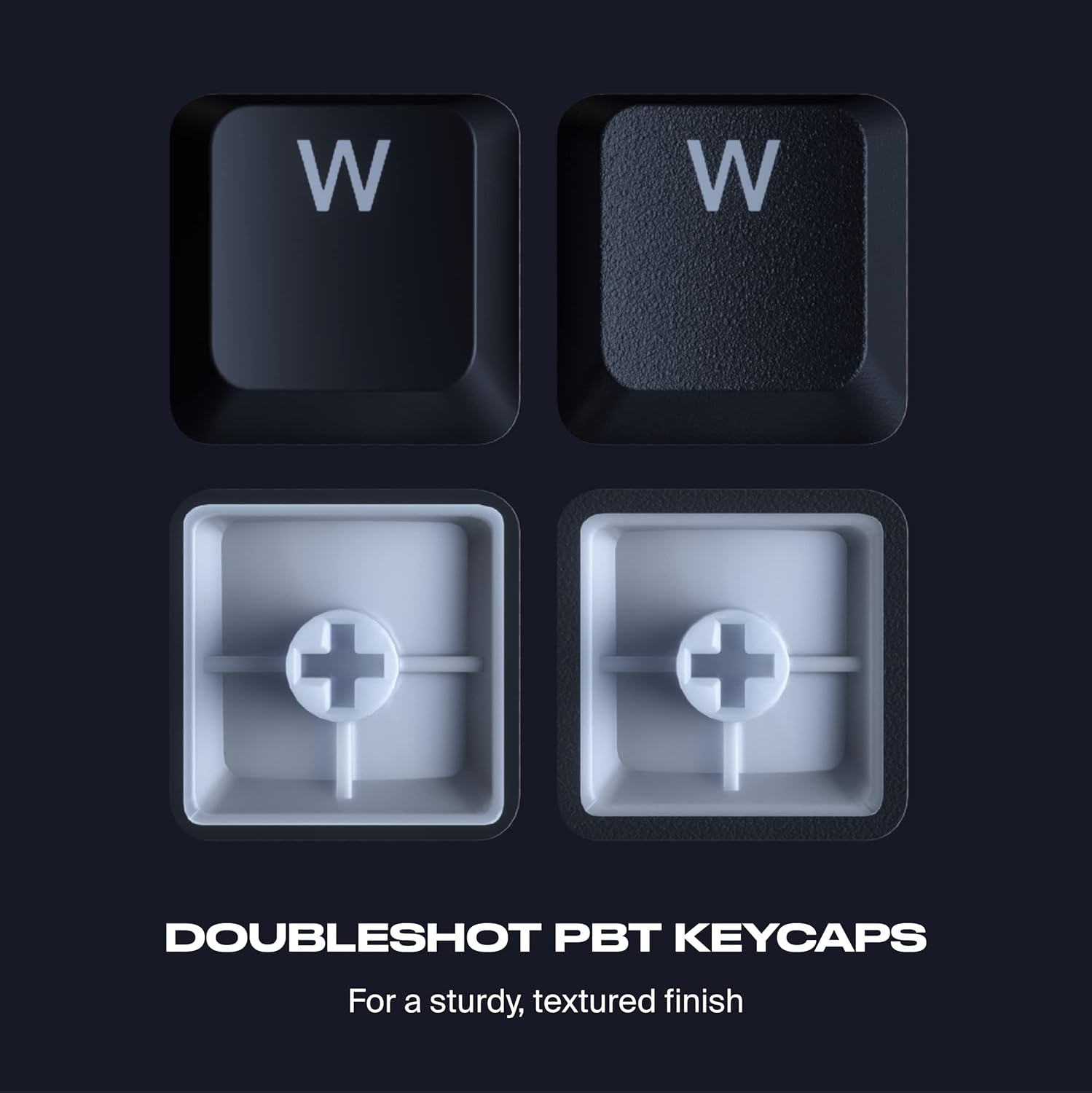 - DOUBLESHOT PBT KEYCAPS FOR A STURDY, TEXTURED FINISH | The first low profile doubleshot PBT keycaps in the world. Doubleshot PBT keycaps are thicker, and more durable, with up to 1.5mm thickness on each side wall. These keycaps are more durable, and