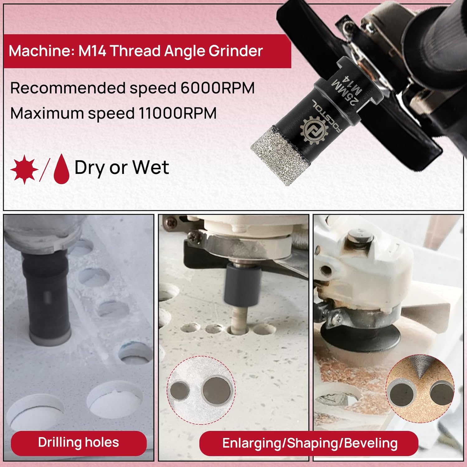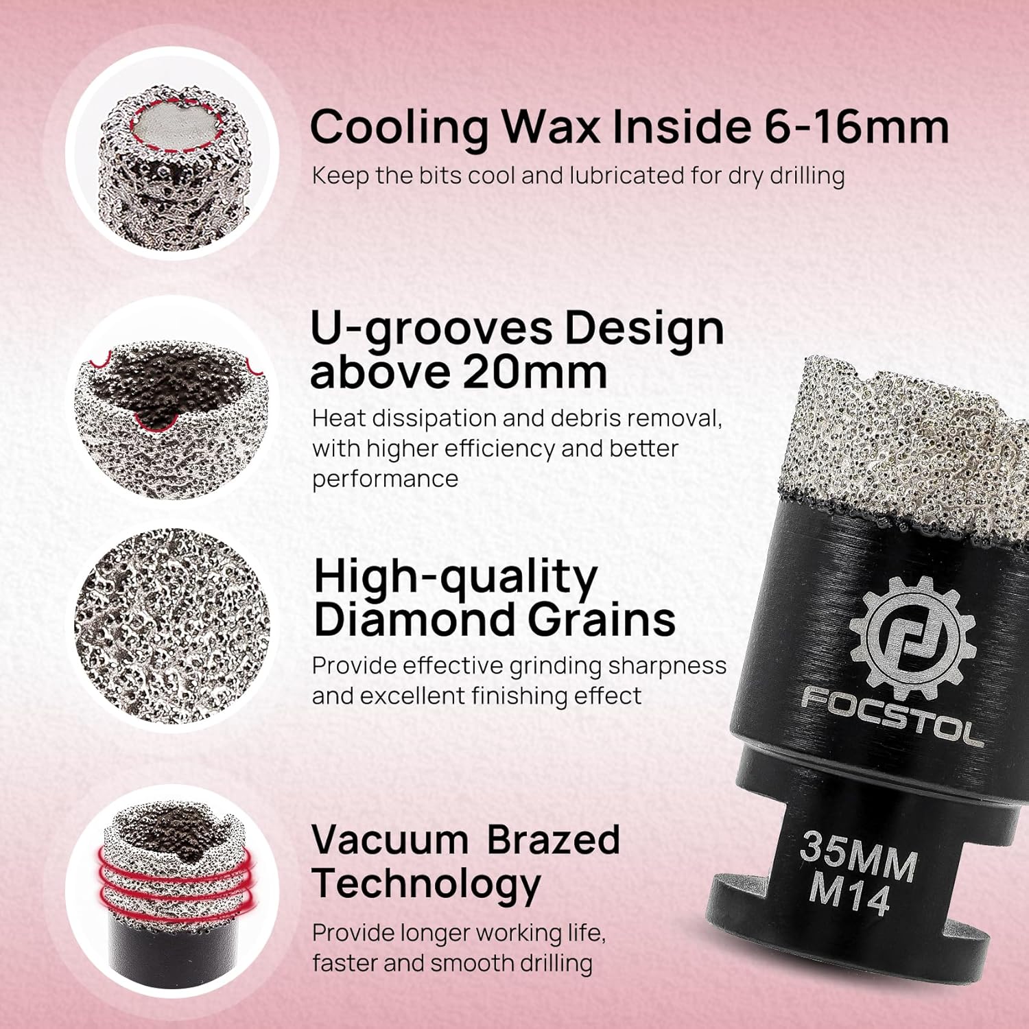 - 【Hochwertige Diamantkörnung】Diamantbohrer sind aus hochfestem Stahl und hoher Qualität hergestellt. Trocken- oder Nassgebrauch. Die Nassanwendung verlängert die Lebensdauer und erzielt eine bessere Bohrwirkung