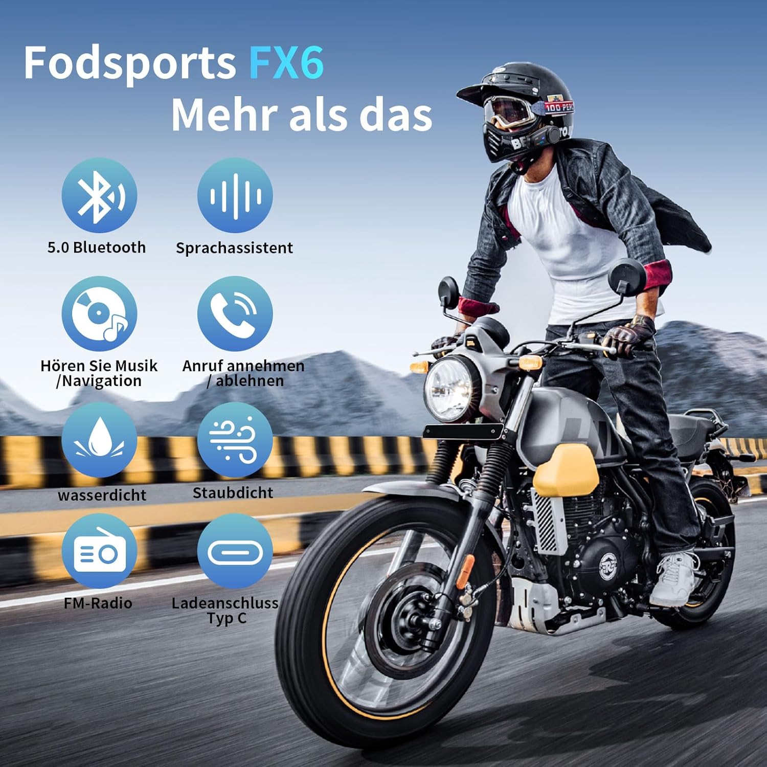 - 【Geräuschunterdrückung】: FODSPORTS FX6 Motorrad Bluetooth Headset Selbst bei 120 km/h auf der Autobahn versteht man sich noch problemlos. (Abhängig vom Helm)