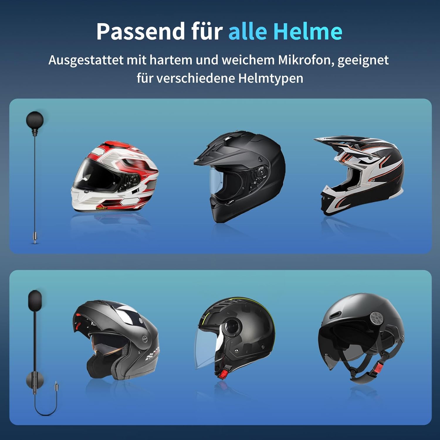 - 【Ein-Knopf-Bedienung】: Motorrad Gegensprechanlage die Montage ist ein Kinderspiel. Für jeden Helmtyp gibt es das passende Mikrofon inklusive Kleber. FODSPORTS FX6 Motorrad Intercom die Lautstärke lässt sich einfach per Scrolltaste einstellen, die
