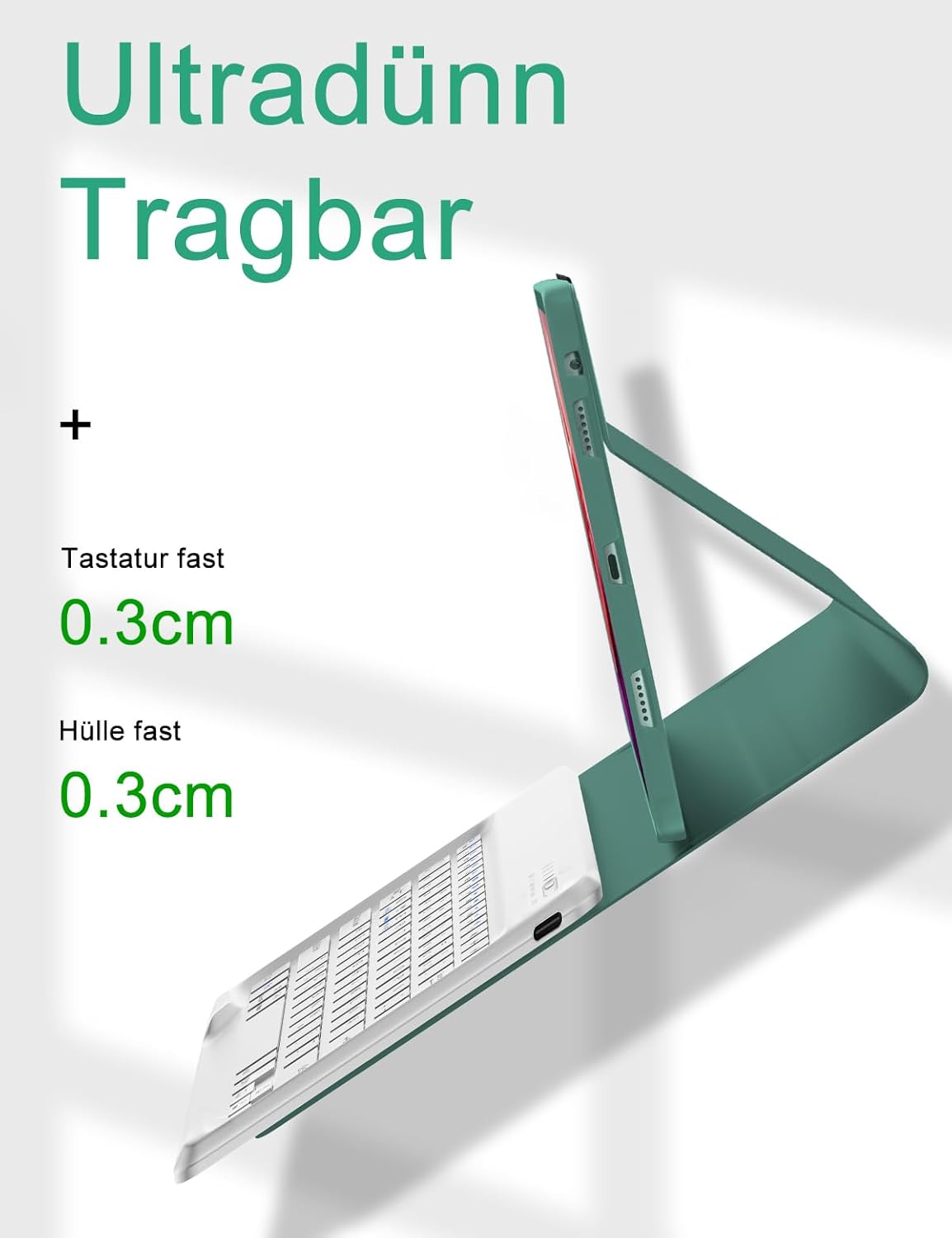- 【Multifunktionsbluetooth -Tastatur】Deutsch Version der QWERTZ-Ausgabetastatur, die abnehmbare Tastatur hat eine magnetische Funktion, um sie fest an der Lederhülle zu befestigen und Ihr tablet in einen kompakten Laptop zu verwandeln. Eingebauter
