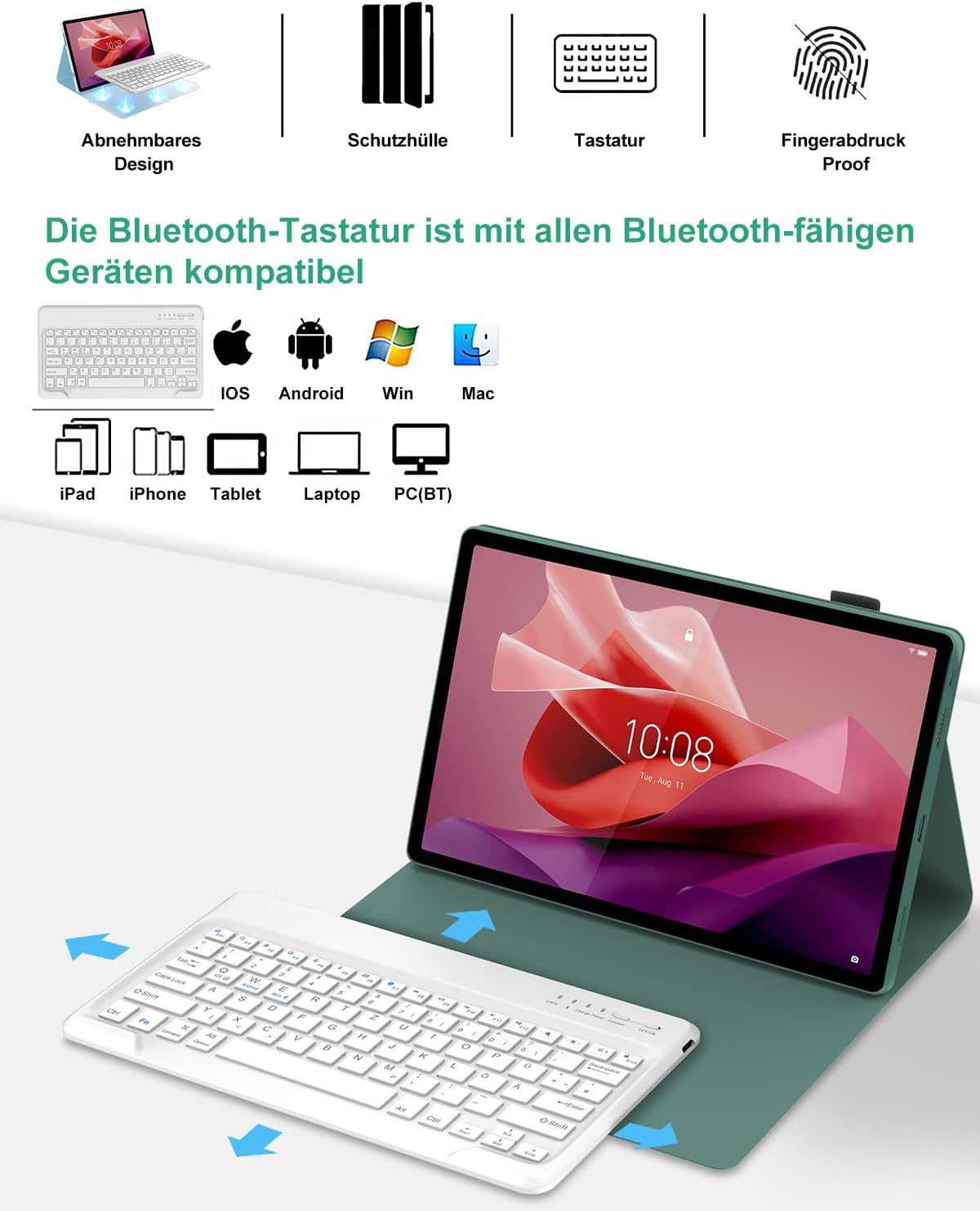 - 【Kompatibilität】Die kabellose Tastatur ist perfekt kompatibel mit Ihrem Lenovo Tab P12 12.7 Zoll 2023. Gilt nicht für andere Modelle. bitte bestätigen Sie Ihr Tablet-Modell vor der Bestellung.