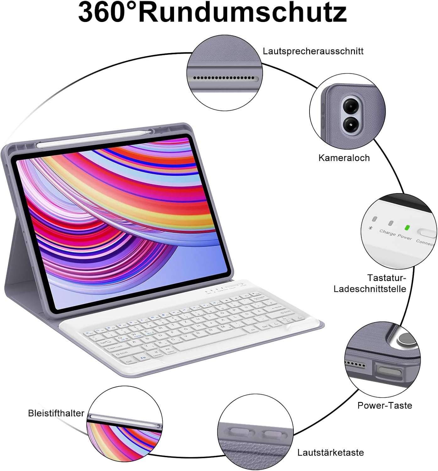 - TASTATURHÜLLE FÜR Xiaomi Redmi Pad Pro 12,1 Zoll 2024 : Die kabellose Tastatur ist perfekt kompatibel mit Ihrem Redmi Pad Pro 12,1 Zoll 2024, Xiaomi Pad POCO 12.1 zoll. Gilt nicht für andere Modelle.