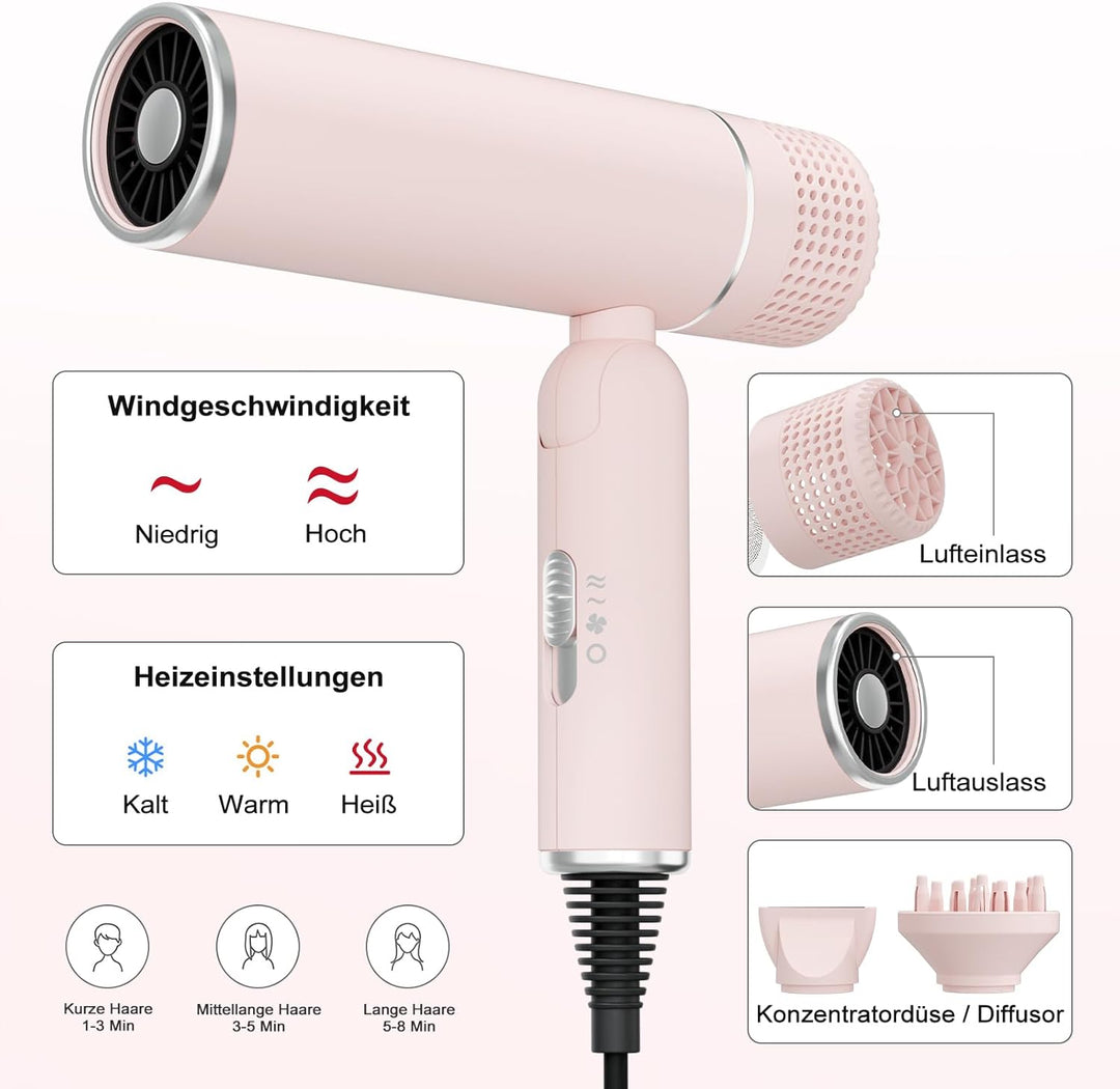- Reisen leicht gemacht – Der reisefön ist faltbar und somit besonders praktisch für den Transport und die Aufbewahrung. Mit einer Aufbewahrungstasche ist der reisefön die ideale Wahl für Geschäftsreisen, Urlaube und den Besuch im Fitnessstudio.