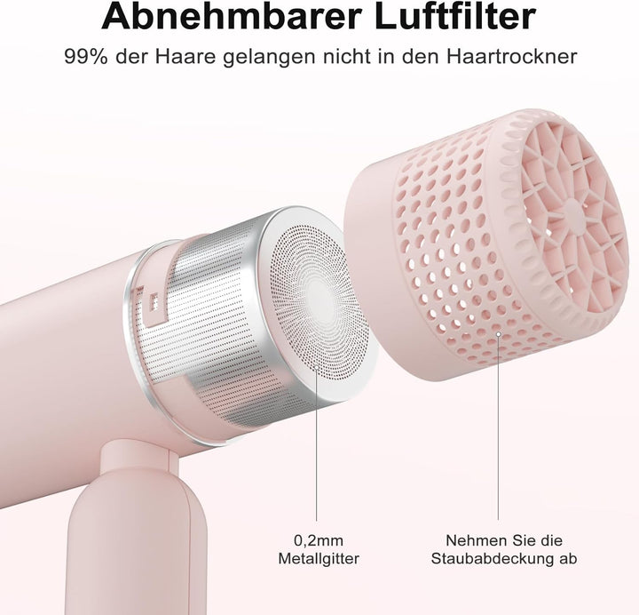 - Verhindert das Ansaugen von 99 % der Haare – Der 7MAGIC föhn ist mit einer abnehmbaren Sicherheitsabdeckung ausgestattet, die verhindert, dass Haare, Tierhaare und Fremdkörper in das Gebläse gelangen. Gleichzeitig schützt die Sicherheitsabdeckung