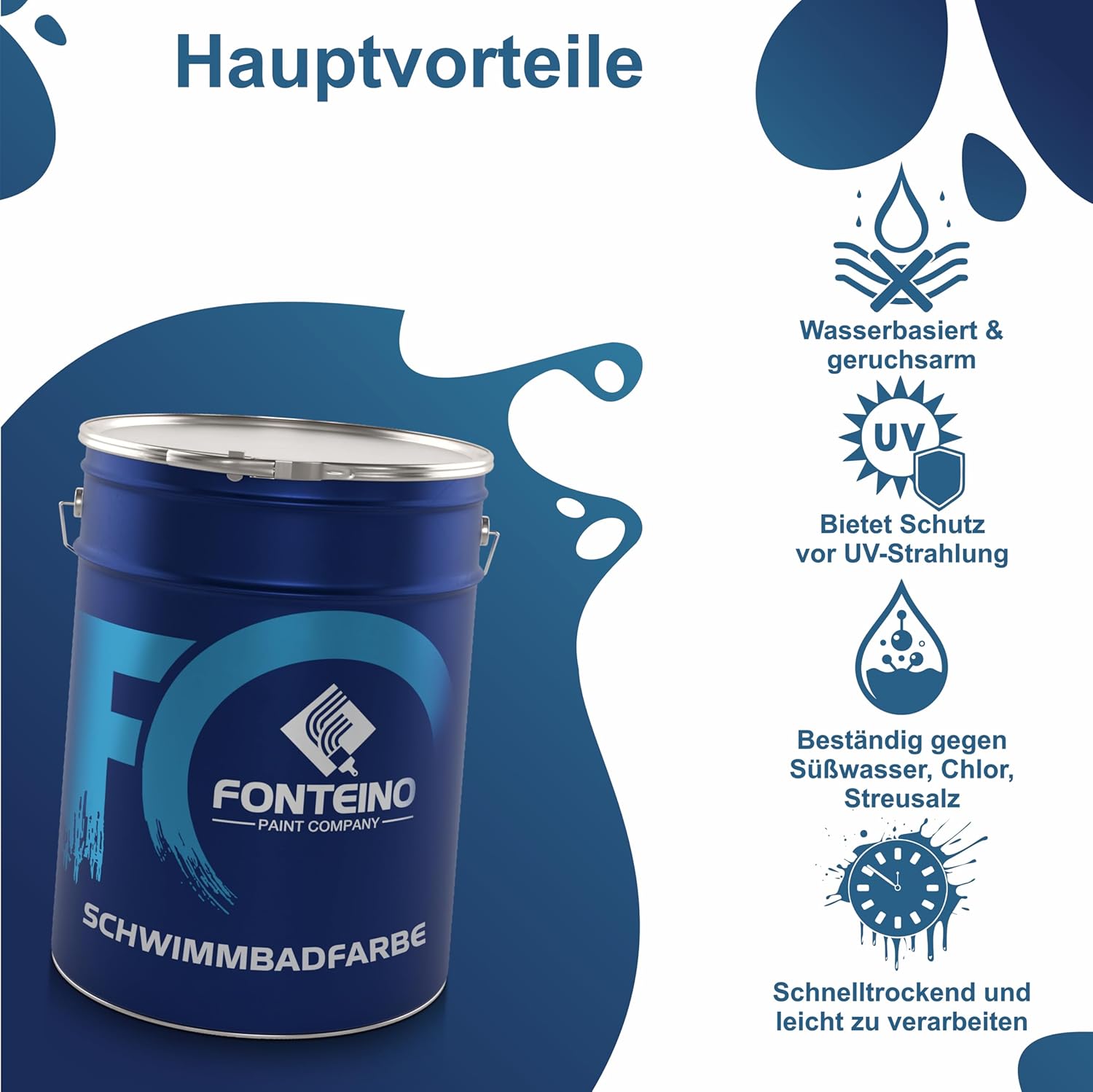 - 🇩🇪 Made in Germany: Hochwertige Poolfarbe aus Deutschland mit wasserbeständigem, seidenmattem Finish