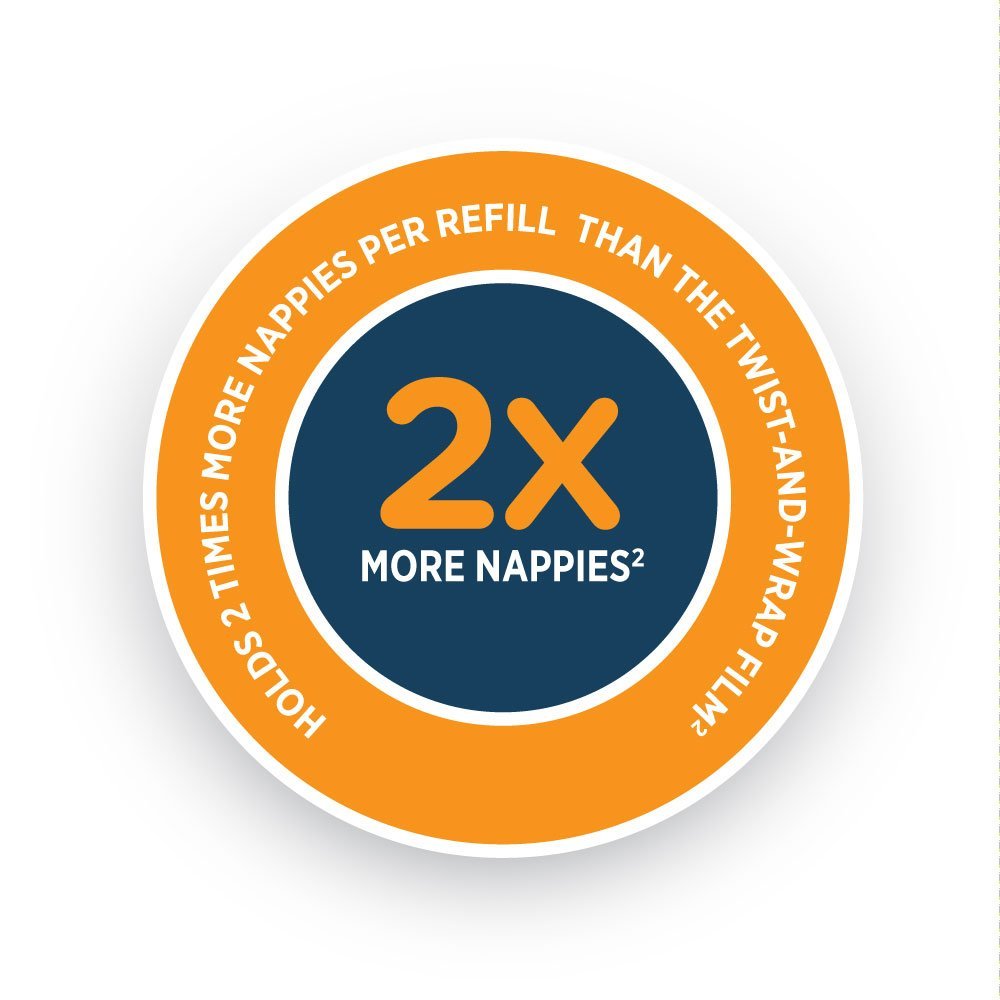 • Der Nachfüllbeutel kann bis zu 180 Windeln enthalten (variabel je nach Grösse)