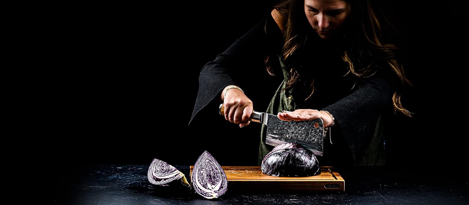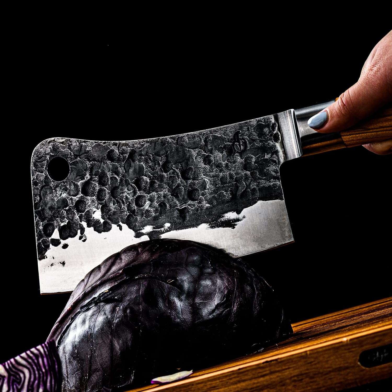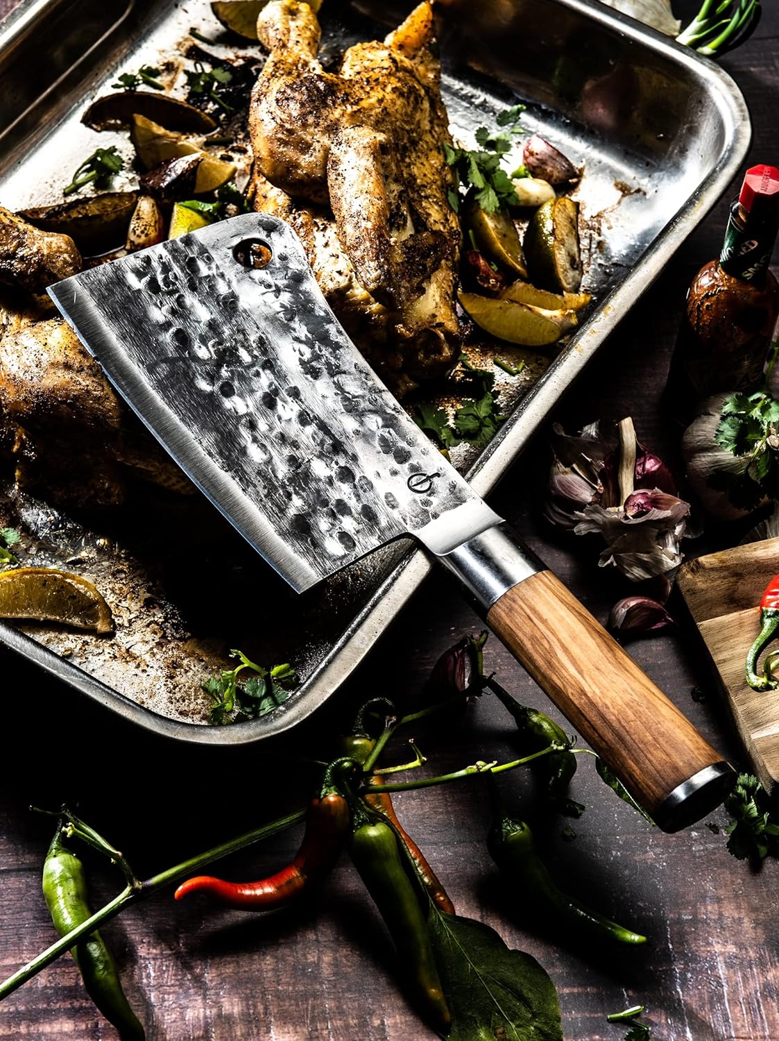 - Einzigartig gehämmerte Verarbeitung mit wunderschönem Olivenholzgriff.