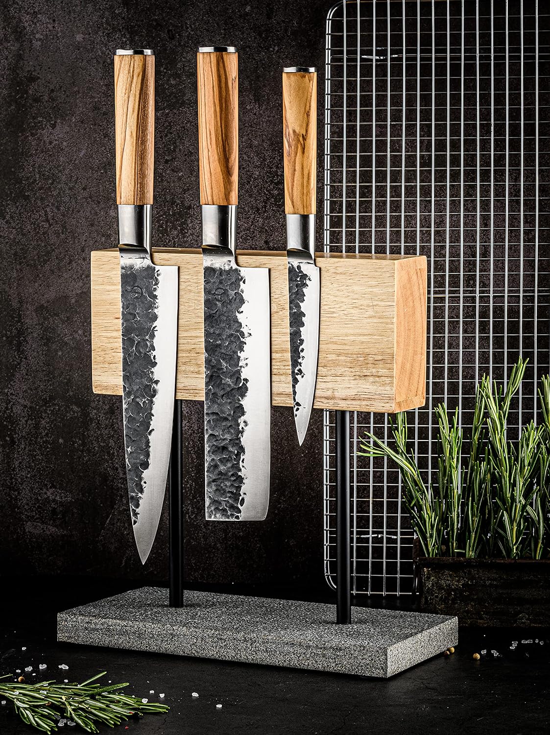 - Einzigartig gehämmerte Verarbeitung mit wunderschönem Olivenholzgriff.