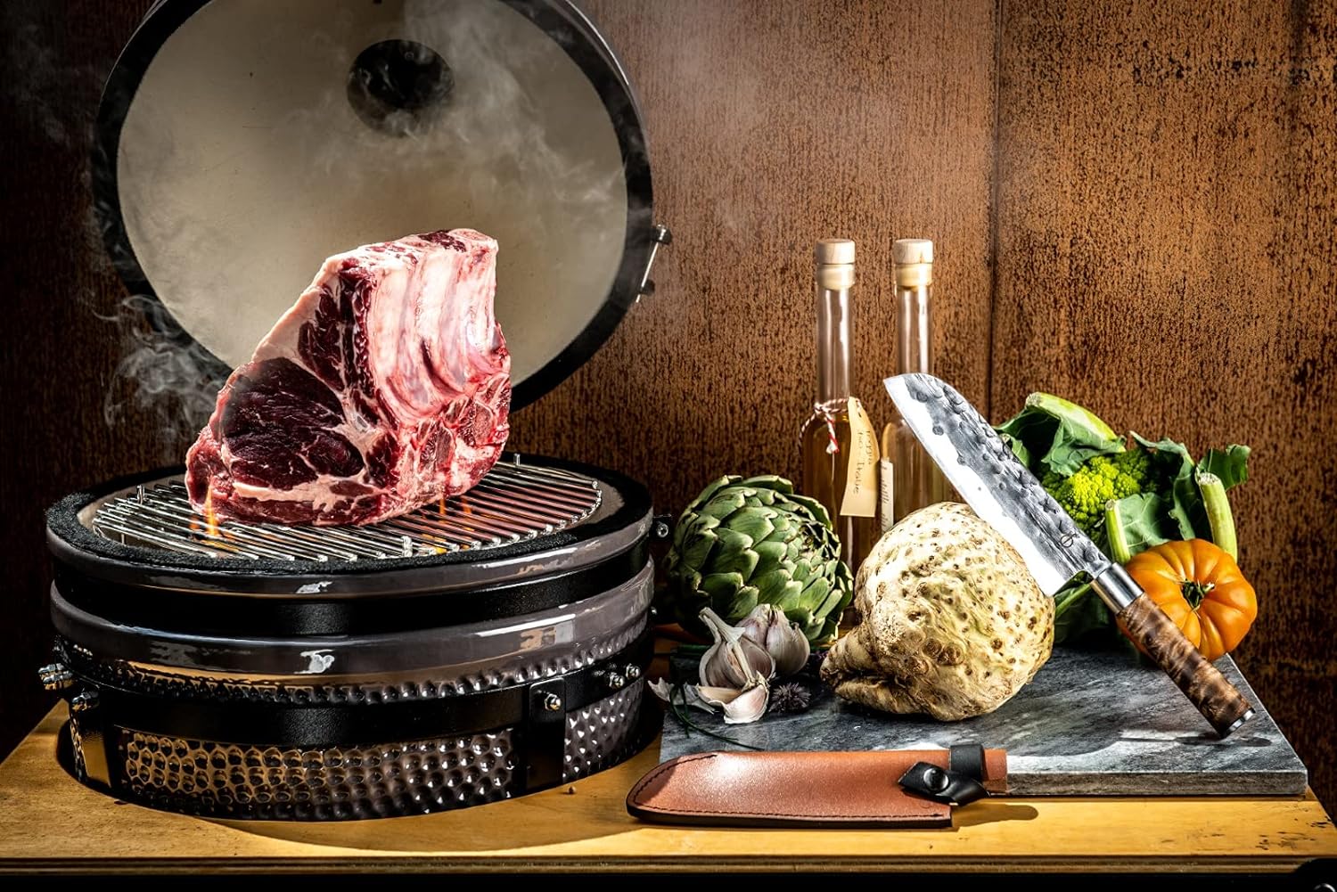• Griff aus schön getrocknetem Wurzelholz.