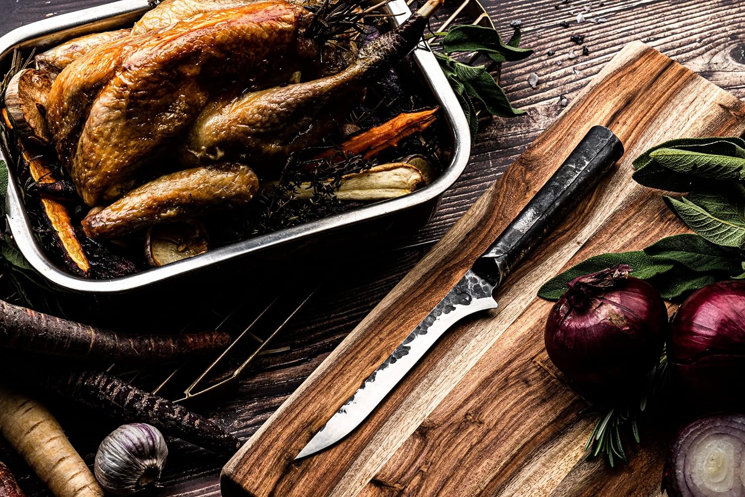 - Von Hand aus Japanischem Stahl geschmiedet. Jedes Messer ist einzigartig in Verarbeitung.