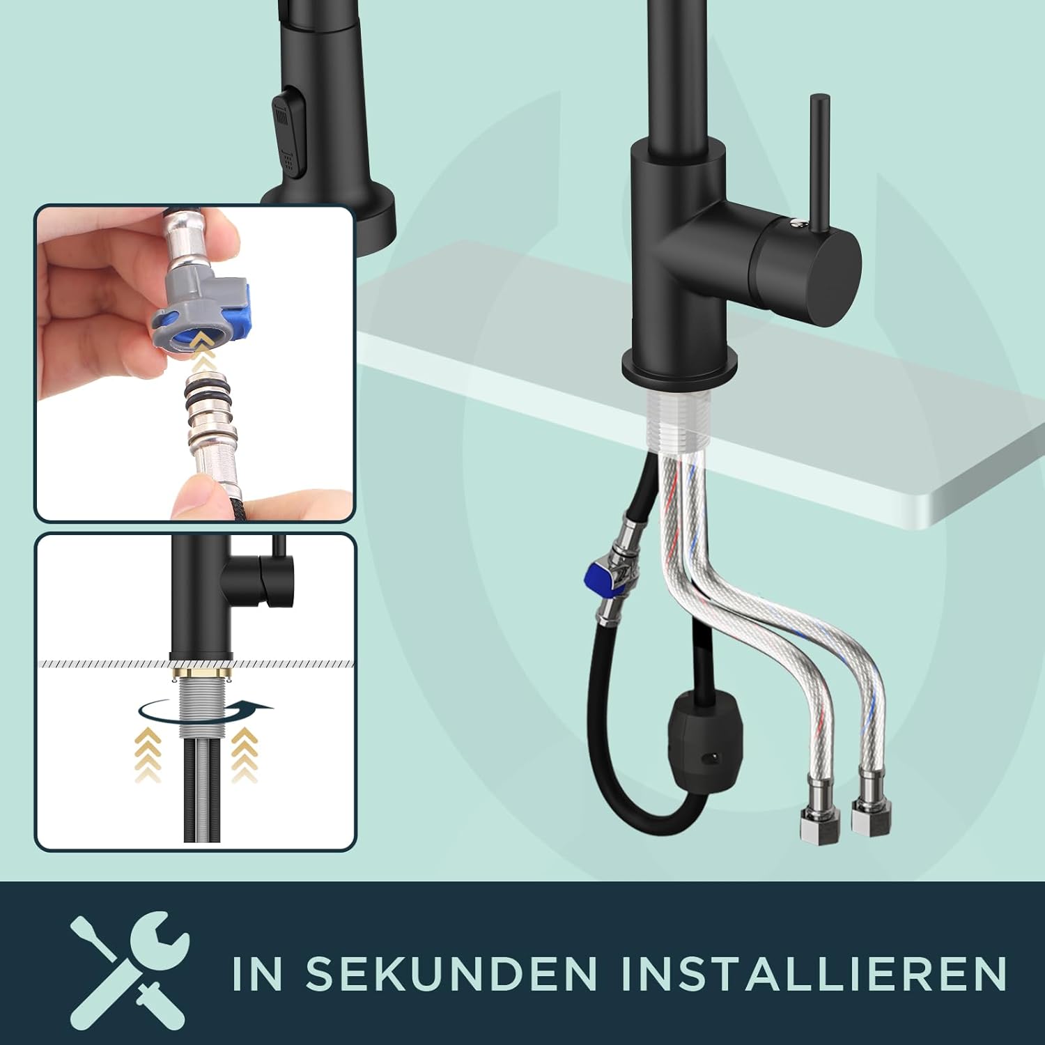 - [Mach es Selbst] Küche wasserhahn aufgrund von schläuchen und schnellkupplungen ist der montageprozess einfach zu basteln. Sie werden den installationsprozess geniessen!