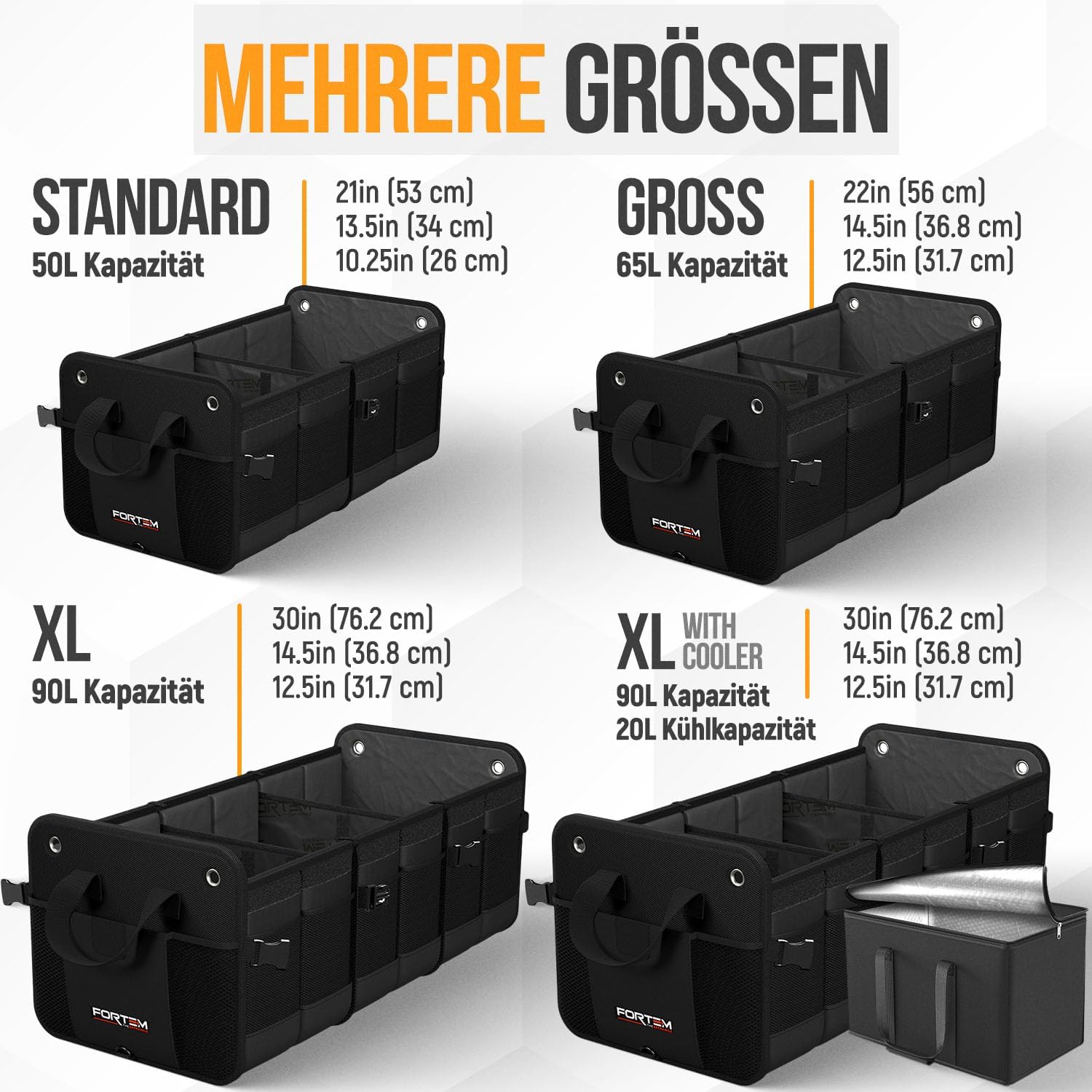 - Robustes Boxendesign - Der Premium Auto Kofferraum Organizer von Fortem ist mit stabilen Bodenplatten ver-stärkt, sodass jede Seitenwand gestützt wird. Unsere Kofferraum Tasche ist die beste unter den Auto Organizer Lösungen und Aufbewahrungsboxen mit