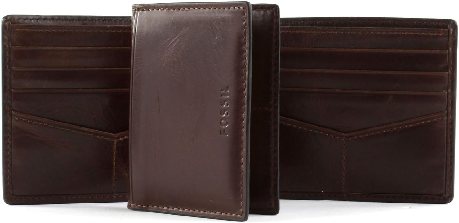 Fossil Herren Derrick Leder Bifold Geldbörse 11,43 cm L x 1,905 cm B x 8,89 cm H Dunkelbraun, Dunkel