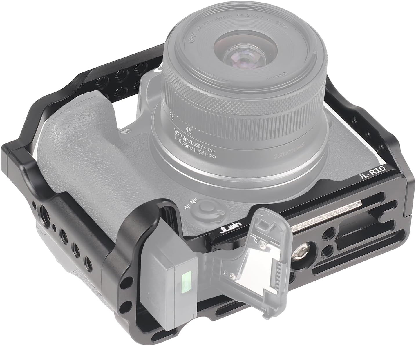 - 【Feine Struktur】Der R10-Käfig ist ein vollständiger Käfig, der speziell für Canon EOS R10 spiegellose Kamera entwickelt wurde. Er passt perfekt zum Kameragehäuse und ermöglicht vollen Zugriff auf den Klappbildschirm, die Tasten, die