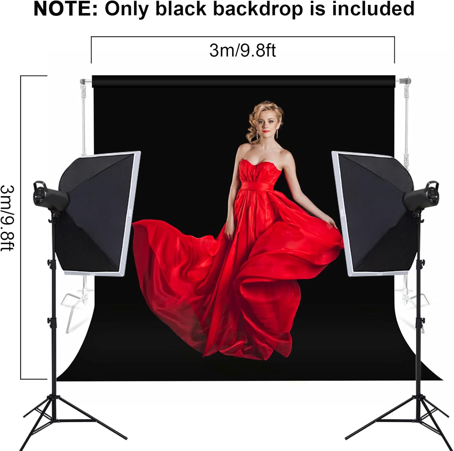 - 🖤10 X 10FT Grösse: Die Grösse von Fotohintergrund ist 10 X 10 ft. Schöner weicher und reiner Schwarz Hintergrund mit nicht reflektierender Oberfläche, professionell für Porträtfotos, Fotoaufnahmen, Videoaufnahmen. Bitte beachten Sie: Dieses Paket enthält nicht den Hintergrundständer.