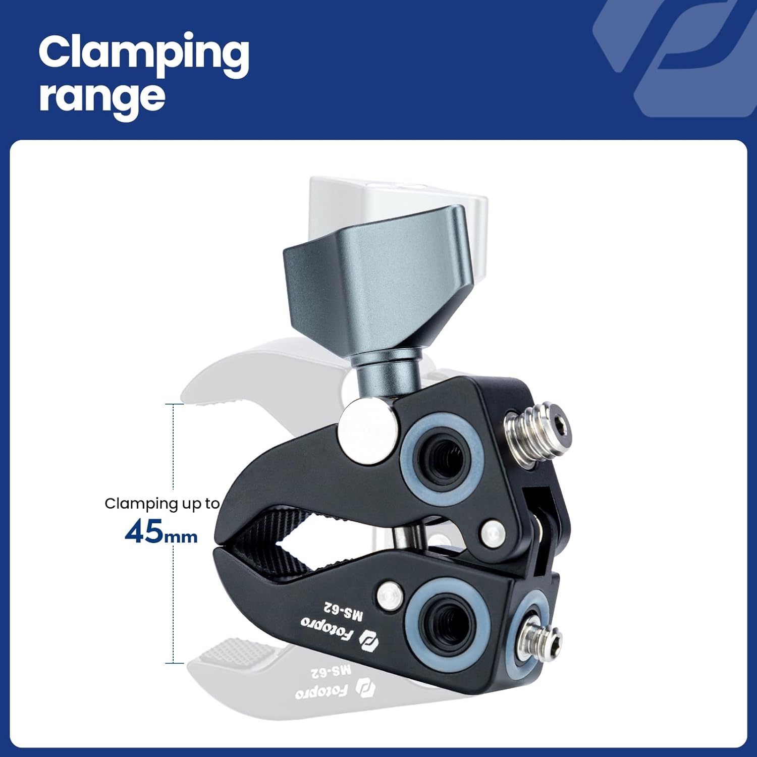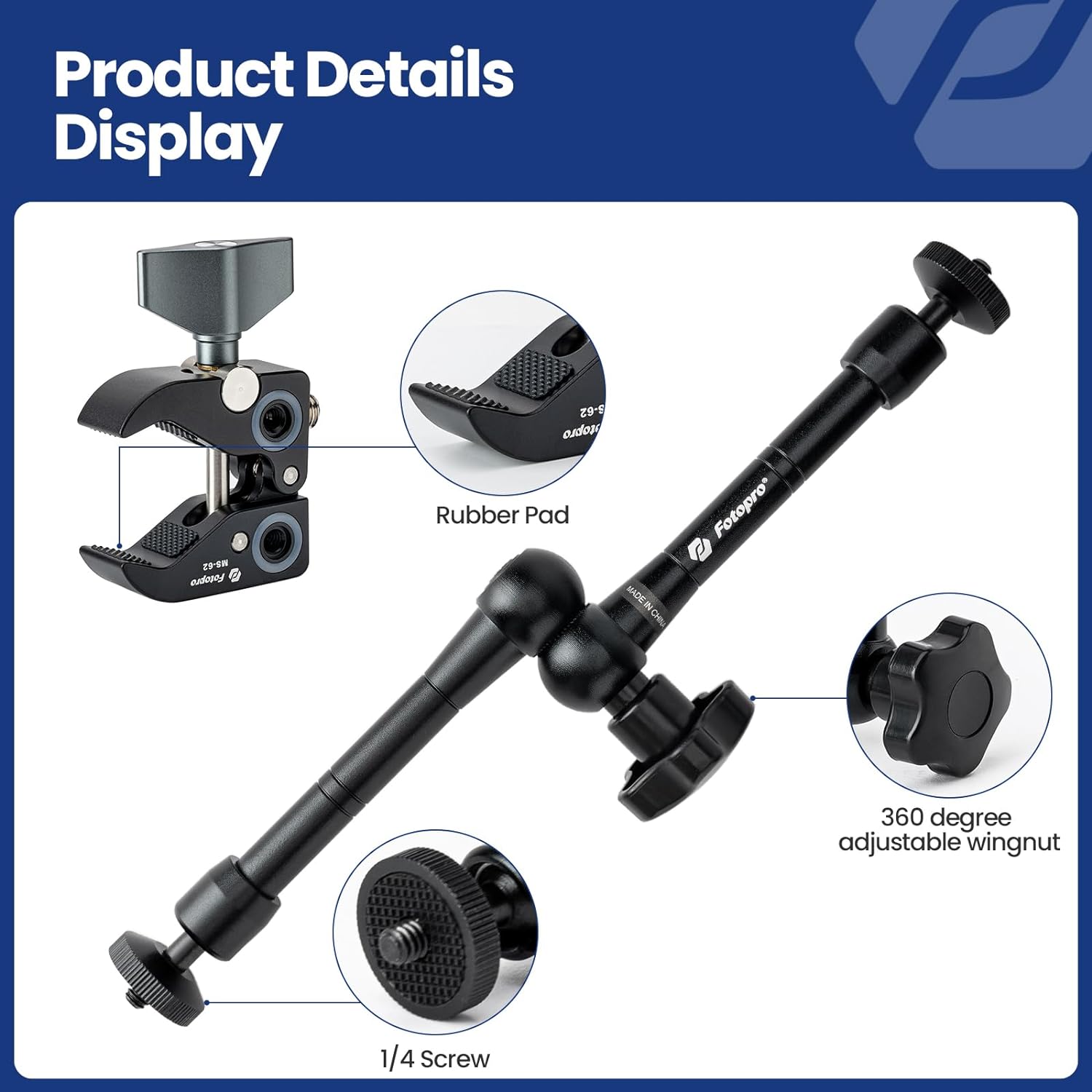 - 【Durable& Lightweight 】 Aluminiumlegierung Material, eloxierte Oberfläche laden Behandlung, solide und robust.Der magische Arm Speicherlänge ist 13,2 cm, wiegt nur 0,2 kg, die Superklemme wiegt nur 0,1 kg. Sie sind klein und bequem in einer Tasche