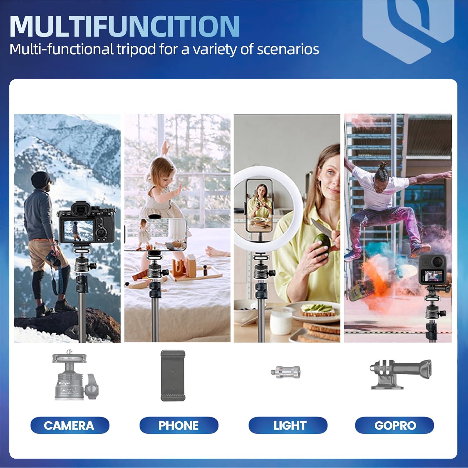 - Idealer Partner: Das Kamerastativ-Set enthält einen P-1H-Stativkugelkopf, eine SJ-85+-Telefonstativhalterung und einen GA-2 Action-Kameraadapter, der für verschiedene Anlässe geeignet ist, z. B. Aussenaufnahmen, Vlogging.