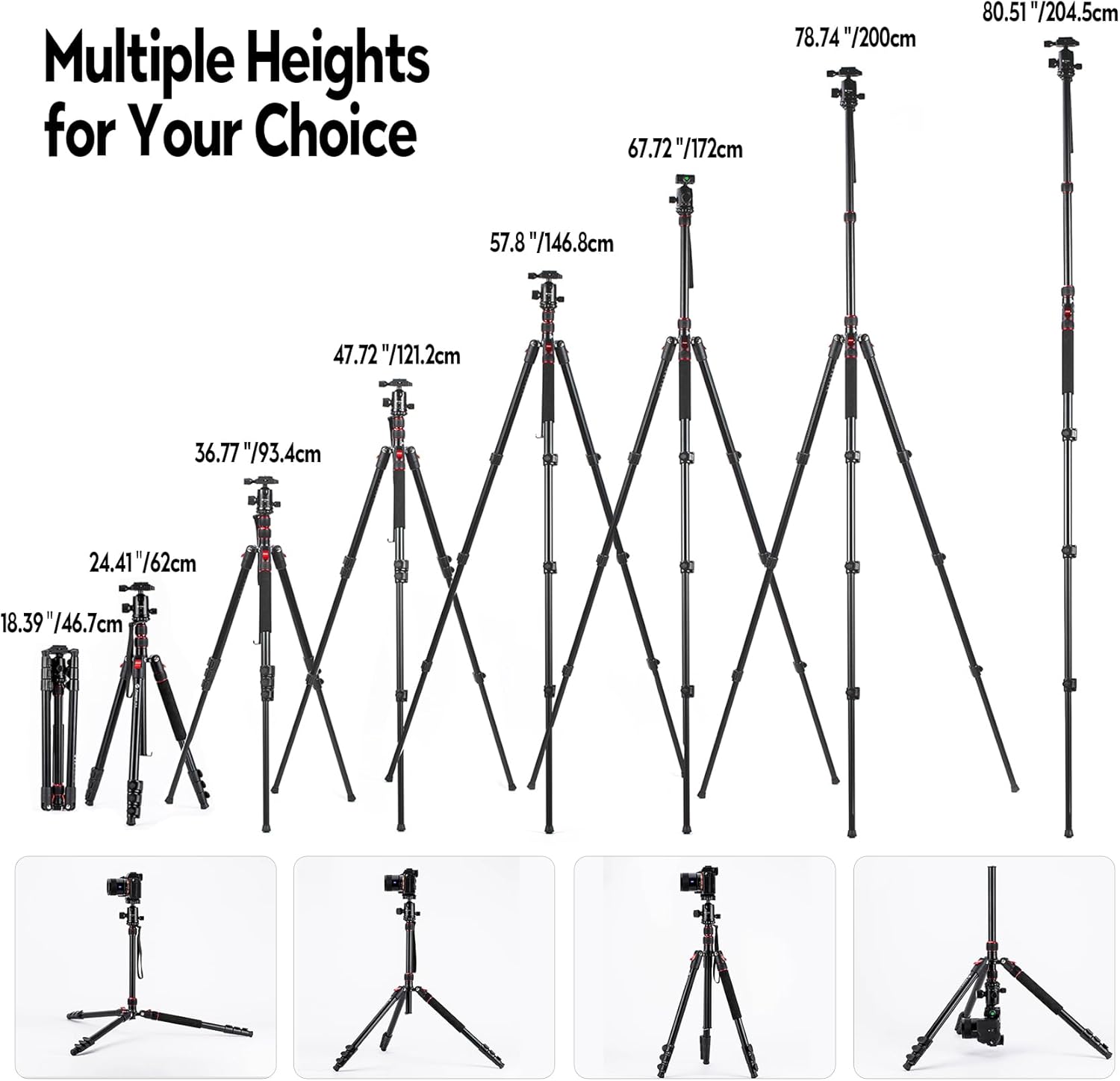 - Höhenverstellbar: Reisestativ nimmt Trigger-Verriegelungssystem, gibt es 4 Abschnitte der Strebe Beine mit 3 Schnellspanner Flip-Verschlüsse, nur leicht Platte Trigger, stellen Sie die Arbeitshöhe von 47CM/17,3 Zoll bis 1,97 Meter/78 Zoll in Sekunden,