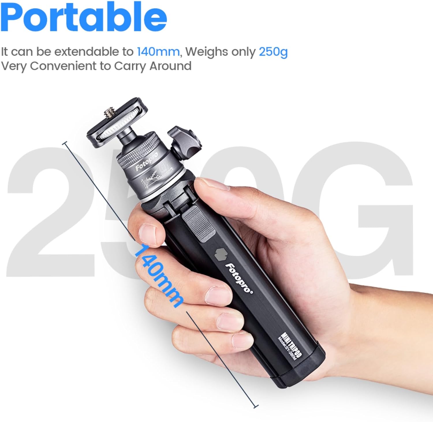 - Multifunktionale Verwendung: Das tragbare Mini-Tischstativ von Fotopro hat eine gefaltete Länge von 17,8 cm für einfachen Transport. Es kann zum Fotografieren auf dem Desktop platziert werden, kann an eine Verlängerungsstange für Live-Übertragung