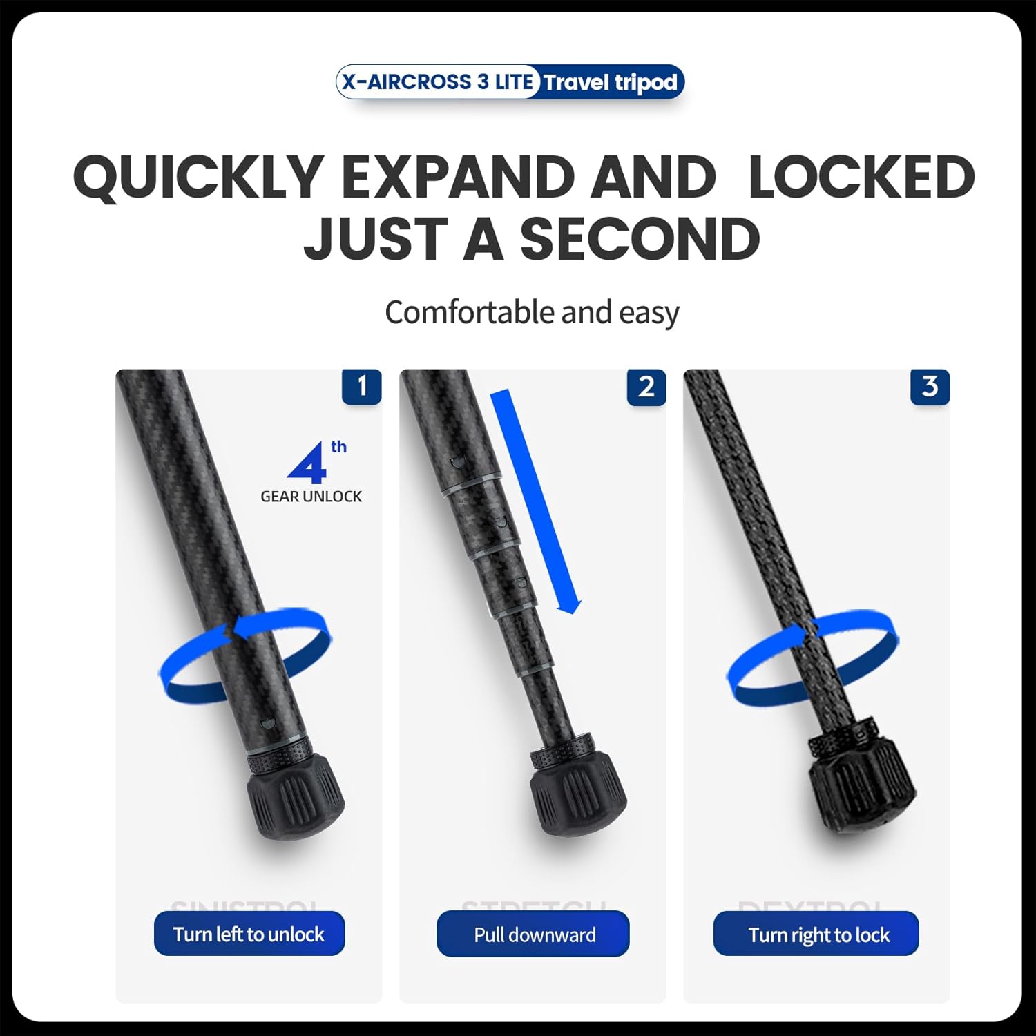 - 【Schnelle Erweiterung】: Das Fotopro X-Aircross 1 Kohlefaser-Stativ-Fussrohr ist mit einem patentierten Schnellverriegelungssystem ausgestattet, das das Stativ in einer Sekunde erweitert und die wunderbaren Momente schnell festhalten kann.