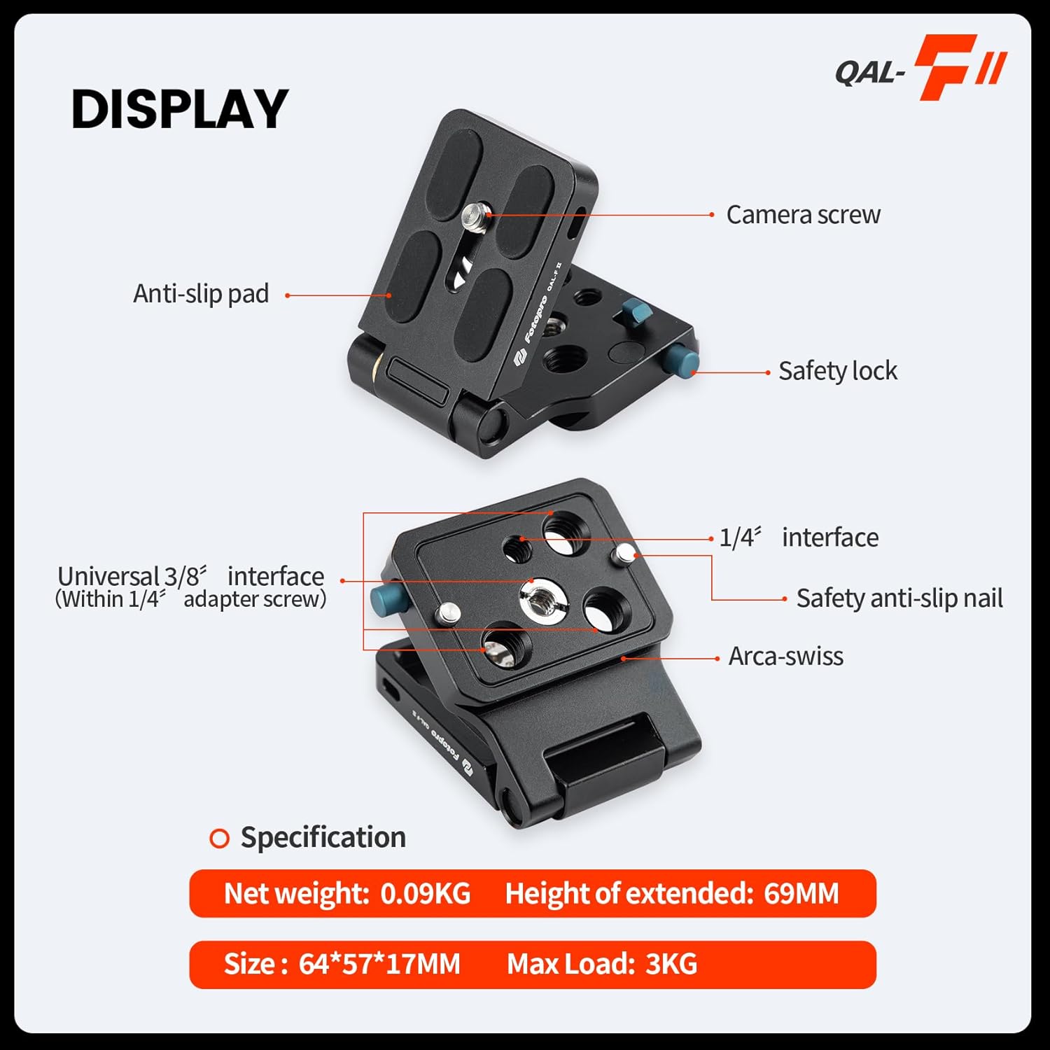 - BREITE KOMPATIBILITÄT Fotopro faltbare Schnellwechselplatte mit L Halterung ist für die meisten Kameras oder DSLRs geeignet und kann auch auf dem Stabilisator verwendet werden.