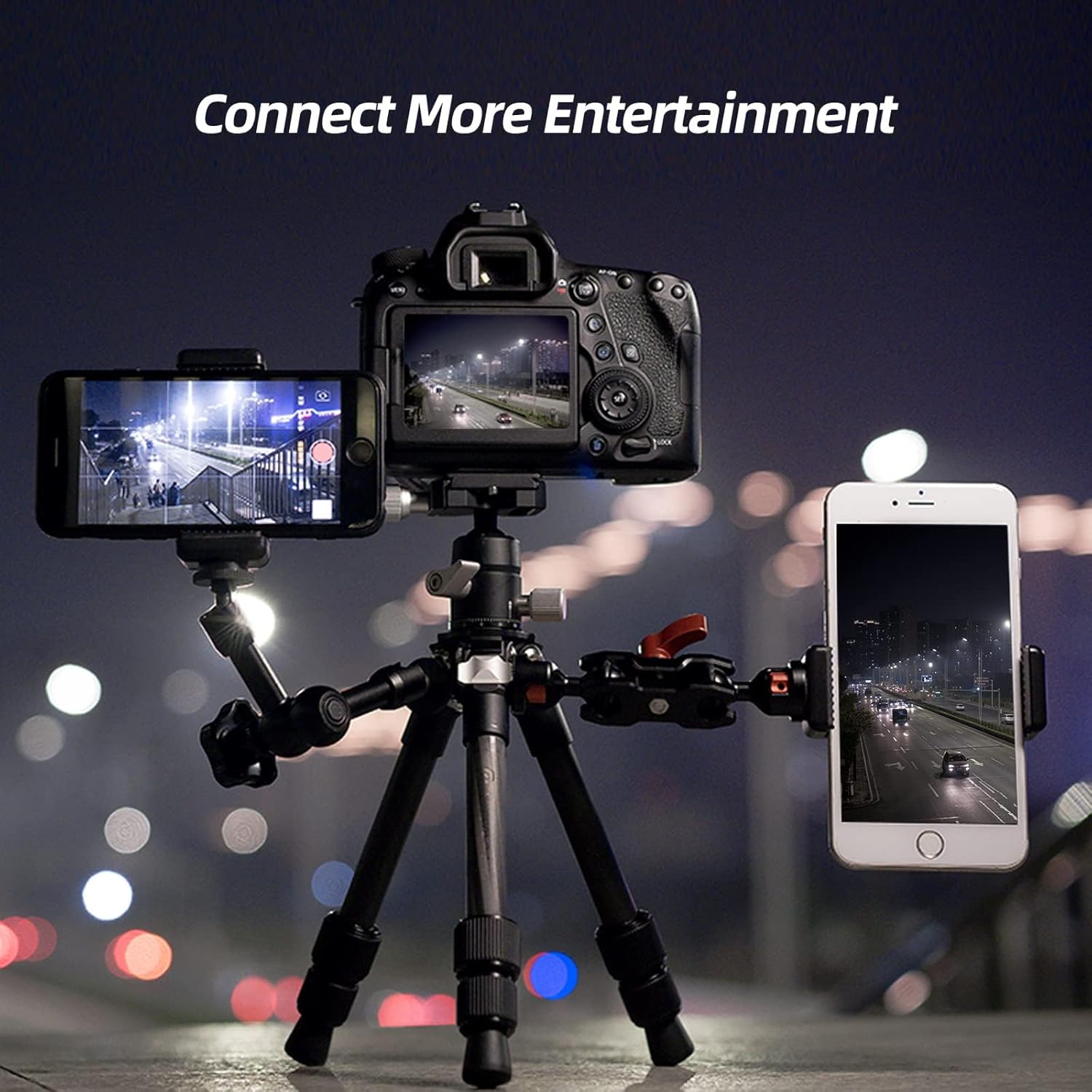 - [Multifunktional] Das Mini-Stativ für die Kamera mit Schnellwechselplatte kann mit DSLR-Kameras kompatibel sein. Und drei verlängerte Löcher können einen magischen Arm für Handys ausstatten.