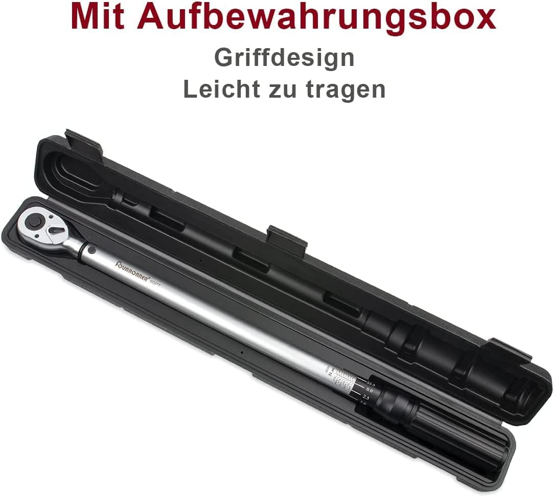 - 【Zuverlässig】Deutlich hörbares Akustiksignal bei Erreichen des vorgewählten Drehmoment. Wenn nicht im Gebrauch, stellen Sie bitte den Schlüssel auf den minimalen Drehmomentwert ein und packen Sie ihn in angegebene Box.