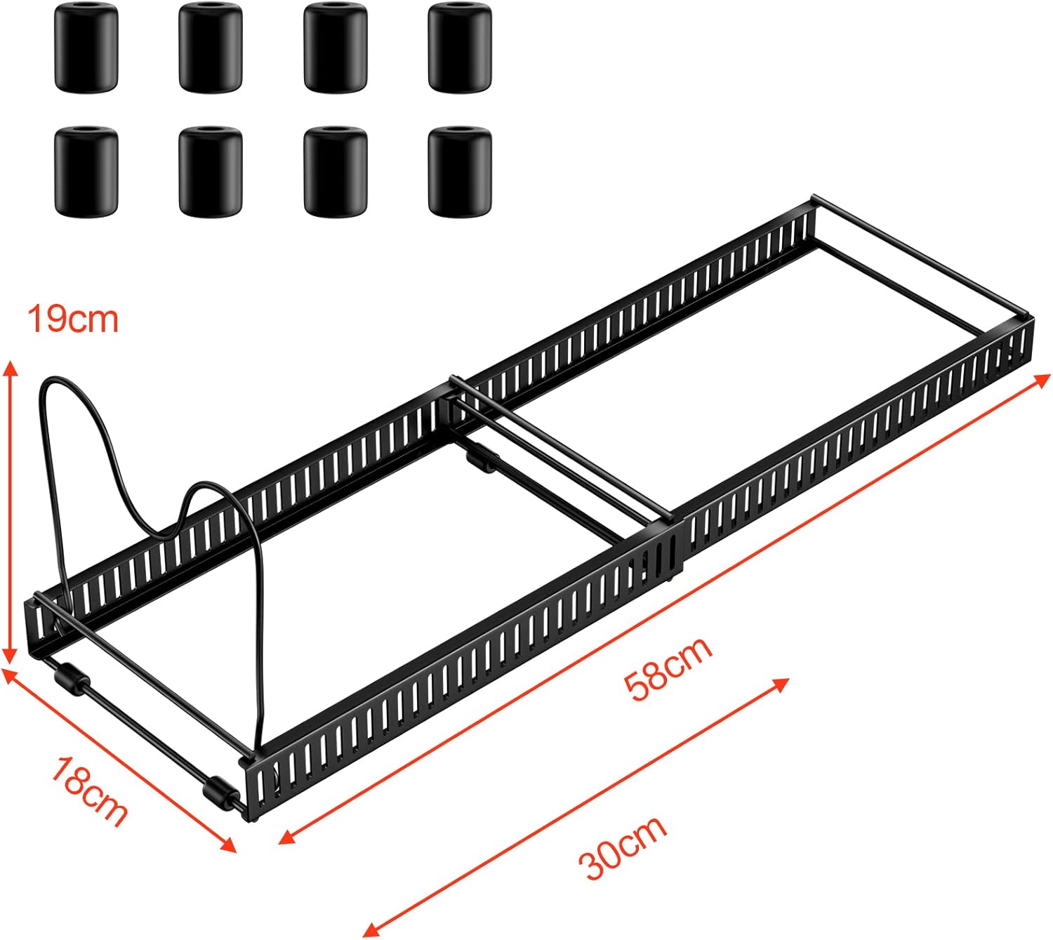 - 【Paket Inhalt】2 x Sockel, die Grösse beträgt 30x18x18cm, mit Teleskop-Design, die beiden Sockel können miteinander verbunden werden, können zwischen 30 cm und 58 cm eingestellt werden, 10 x abnehmbare Trennwände, 8 x rutschfeste Silikonschoner,
