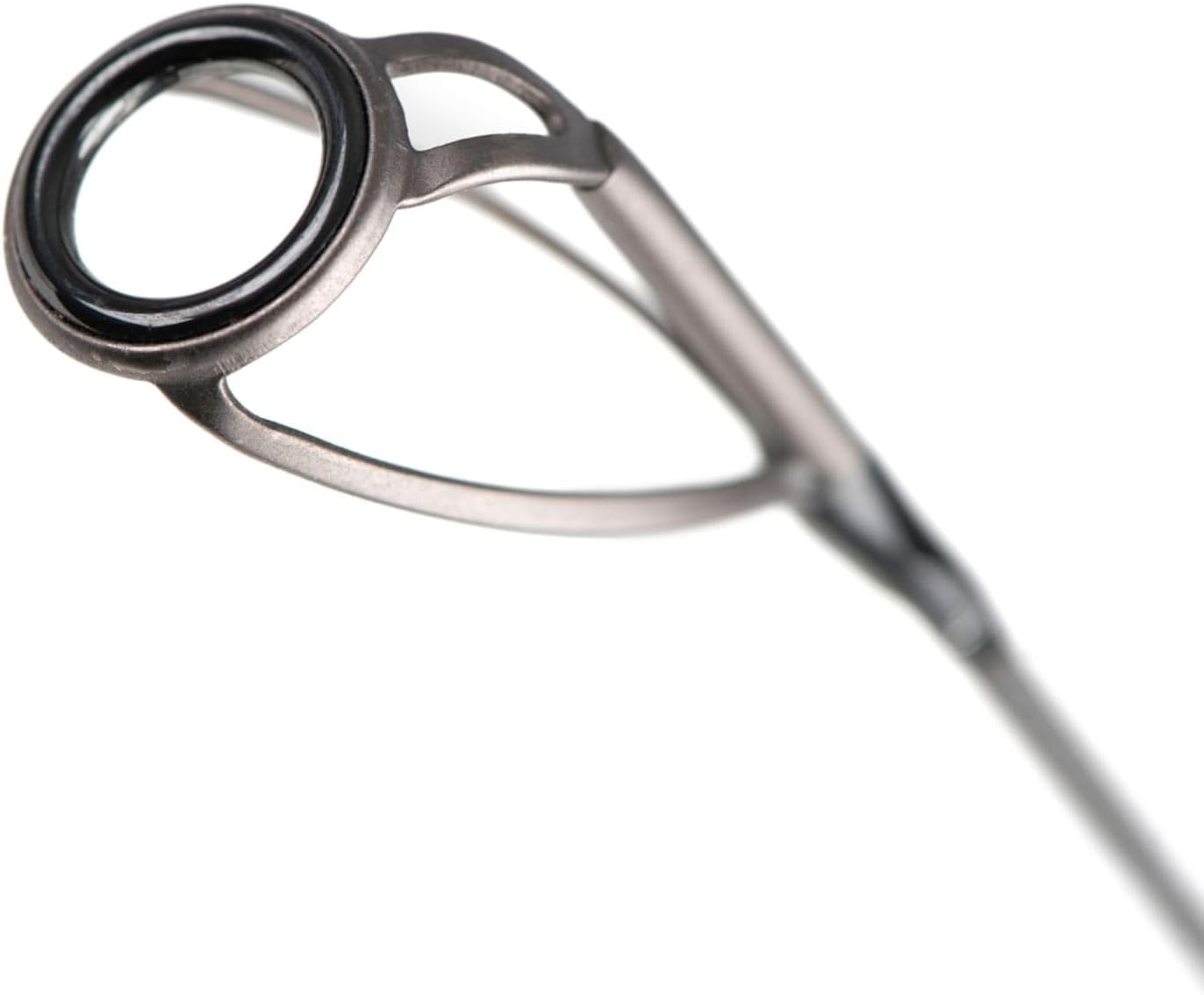 - Verstärkte Karbon-Powersteckverbindungen, 1k Karbonmatte, Griffteil aus Schrumpfschlauch, Dezent beschriftet, 50mm - 16mm American Tackle Ti-Forged Pentalite Titanium Anti Frap Beringung, Rauchgrauer Fuji 18mm DPS-Rollenhalter