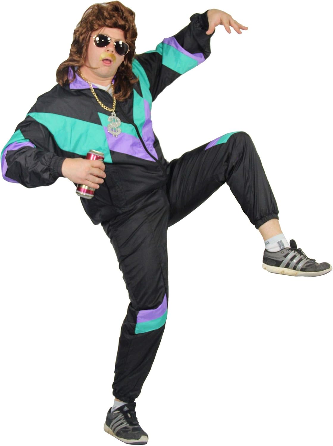 - LOS GEHT’S! Du bist auf eine 80er Jahre Party eingeladen und suchst ein passendes Kostüm? Mit dem authentischen 80er Jahre Trainingsanzug für Herren in den Farben schwarz-grün-lila bist du bereit für Jede Bad Taste Motto-Party, für Fasching, zum