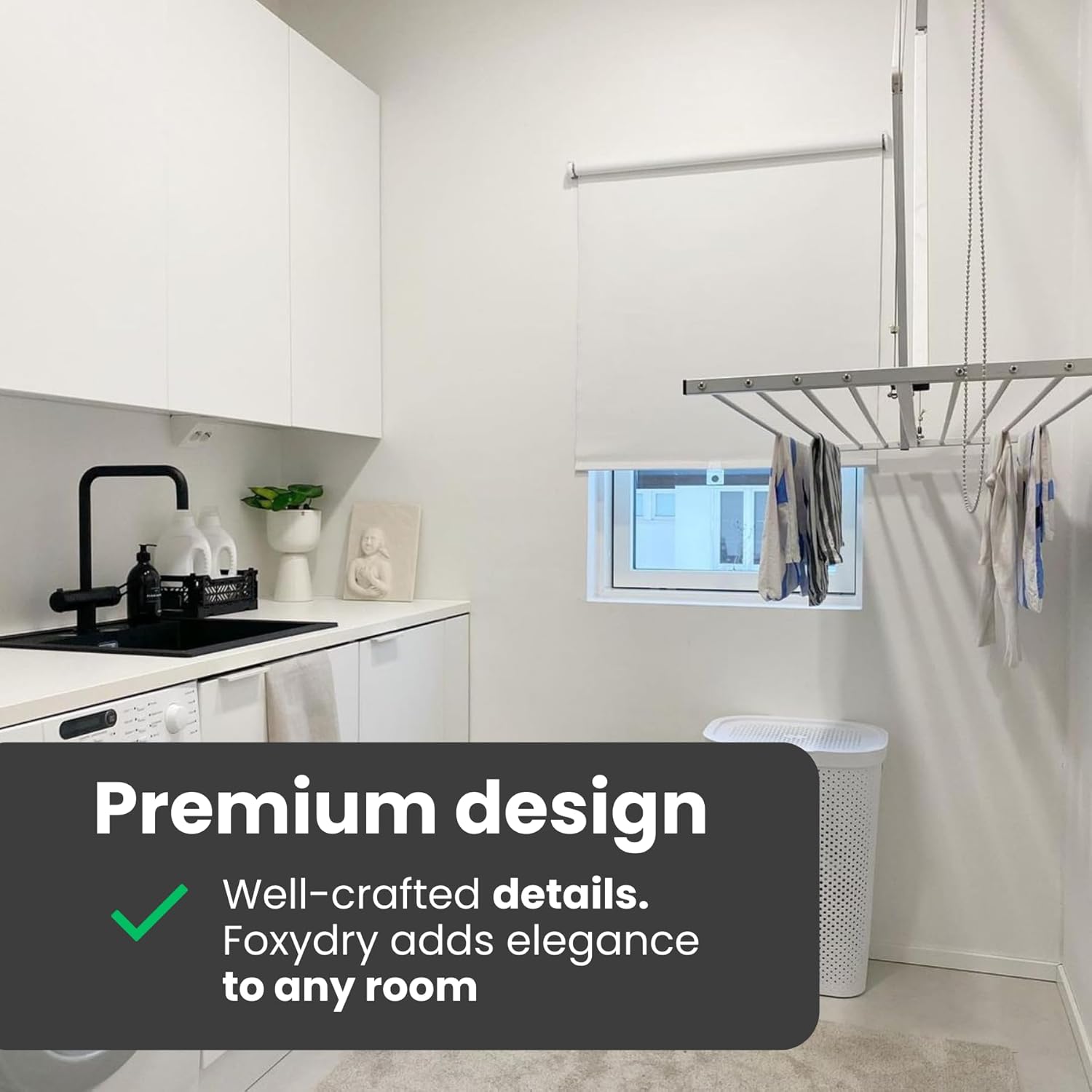 - ▶️ 【Schaffe neuen Raum mit Eleganz】: Foxydry Mini ist der Deckenwäschetrockner, der Platz schafft und an der Decke verschwindet. Perfekt als Innen- oder Balkonwäschetrockner, verschwindet der Deckenwäschetrockner Foxydry Mini aus dem