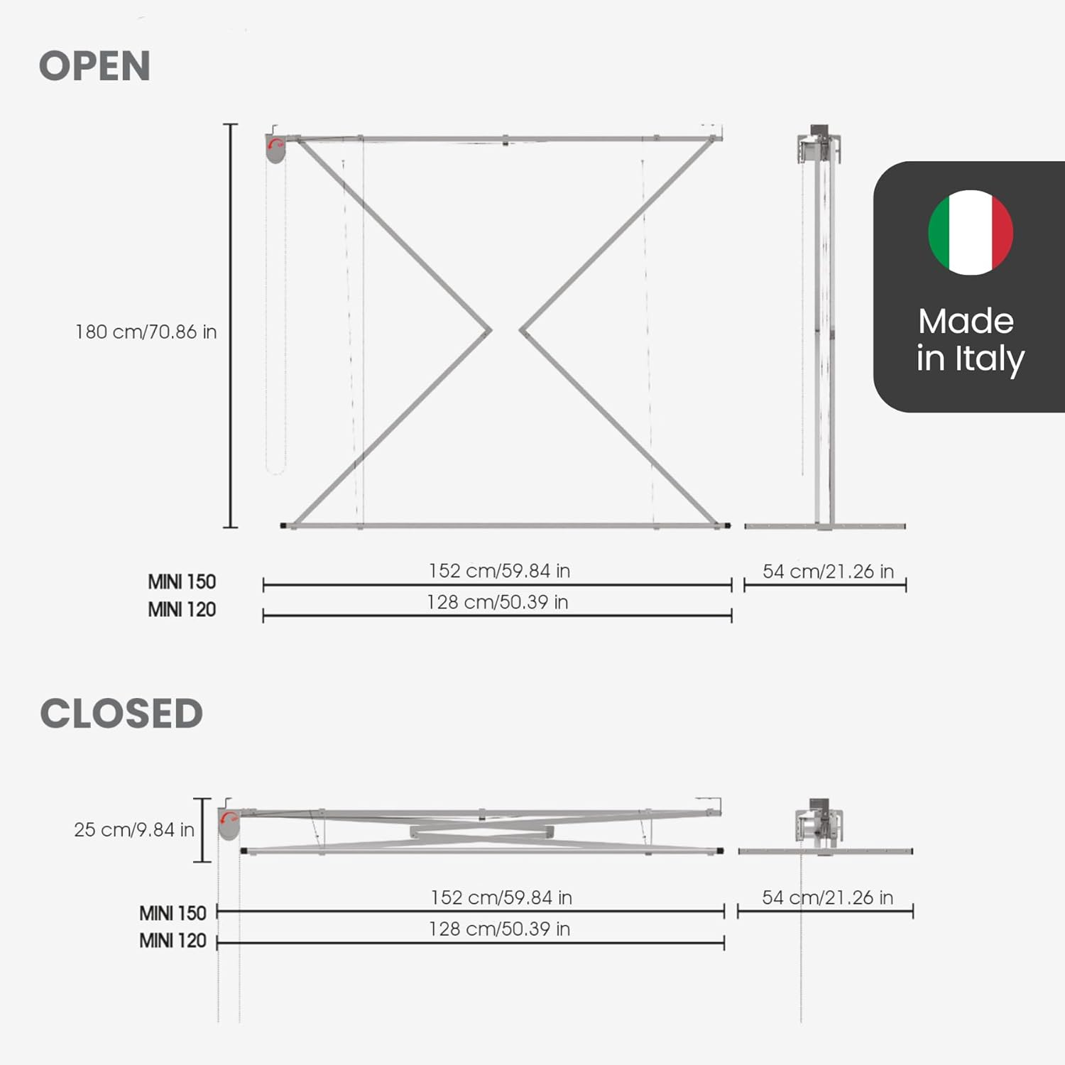 - Ausgestattet mit 8 Wäschestangen mit einer Länge von je 1,2 m, also insgesamt 9,6 m Wäschekapazität.